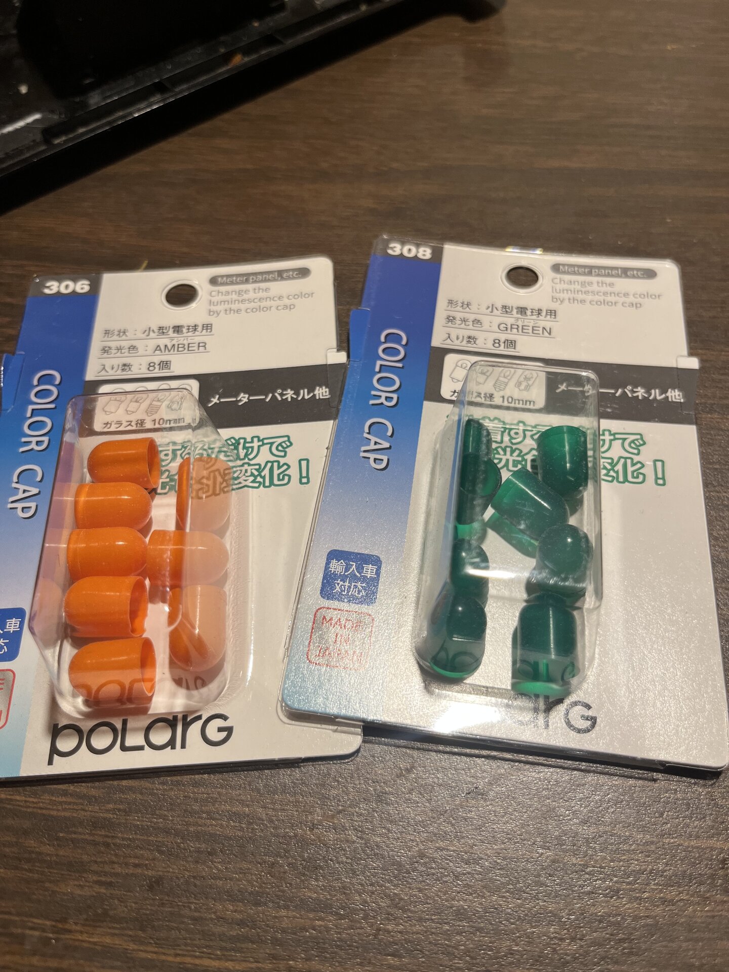 Bulbs for the dash. Something is wrong here, thoug: Either the dash doesn't have T10 bulbs, or the green caps are too small. Dang it. Anybody an idea?