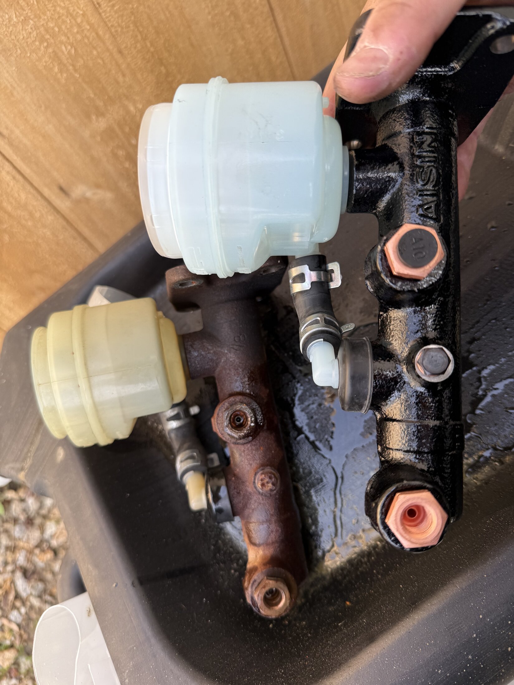 New brake Master Cylinder. Parts geek had this one for the 70 series and it was $92! Has Aisan cast into it… Brakes are sooo much better now. Old master was sticking and fluid was old and contaminated.