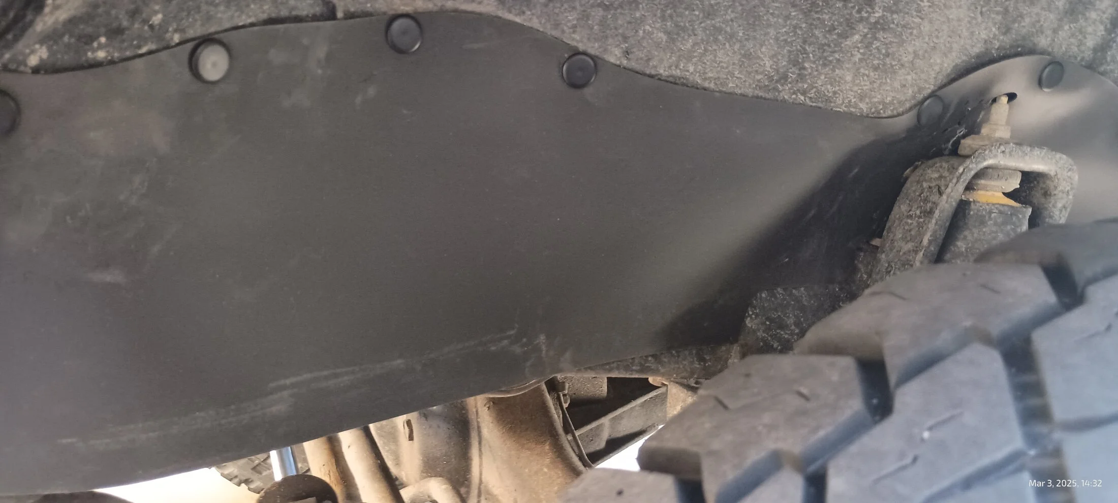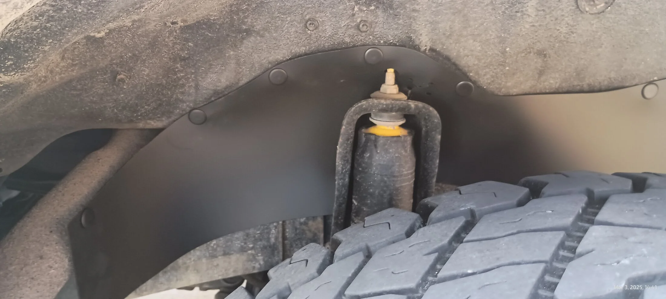 I got all the belts out. In the process I think I found the main culprit for the dust leak in the back. When off-roading, fine dust enters the rear of the cabin, creeping out from under the trim panels on the back doors. I think the missing body plug visible below is how the dust gets in. Should be easy enough to fix.
