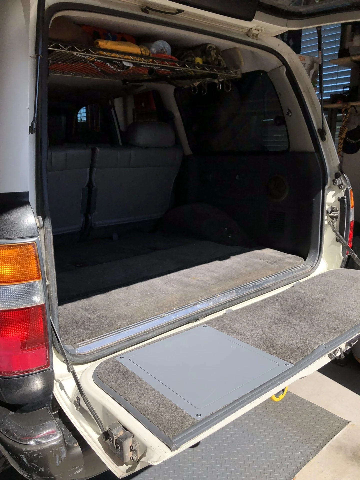 12”x12” universal steel access door. You can buy them at any hardware store like Home Depot or an electrical or plumbing supply store. I bought mine from a plumbing supply store in chandler for 14.99. I am sure there are other ones to choose from. I needed it for a household projects but did not use it. Had it sitting on the tailgate when the idea came to me. I might glue the carpet from the hole I cut out to the front to make it a little more of a secret hiding spot. It was a 15 minute job with a jig saw just don’t cut the control rod that connects to the tail gate latch. Cheap and easy my kind of modHomemade? Or is that an existing cabinet that you dropped in?