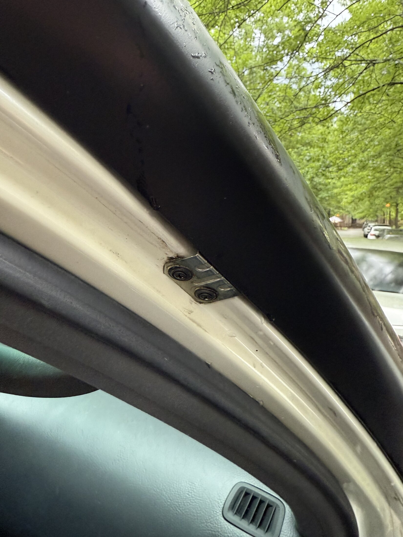 Are those self tappers? If so, they very well could be your problem. It also looks like you have some corrosion forming that needs to be remedied.Found out I’ve got a leak from the front passenger door seal.