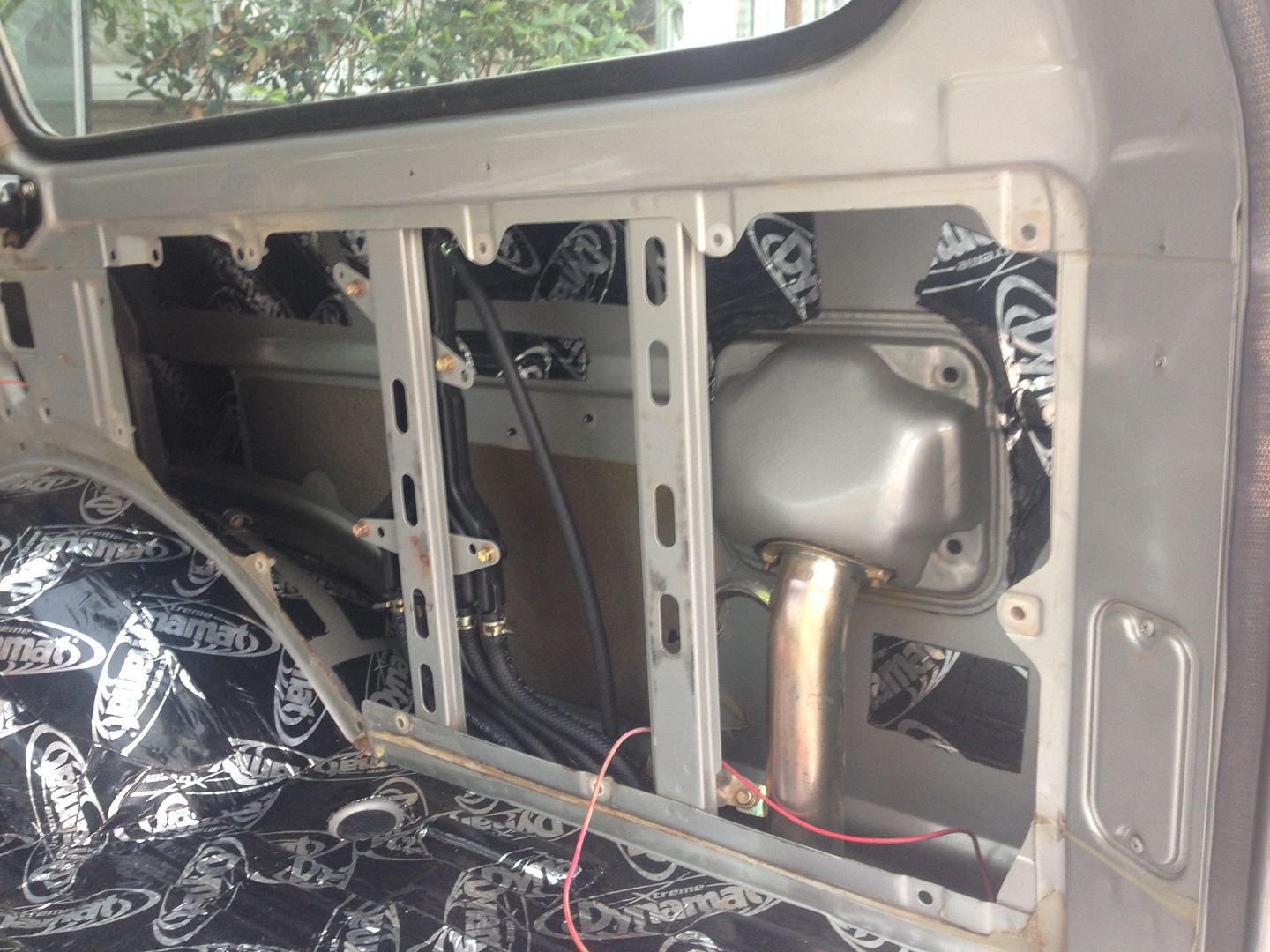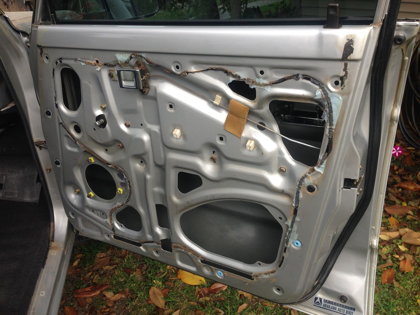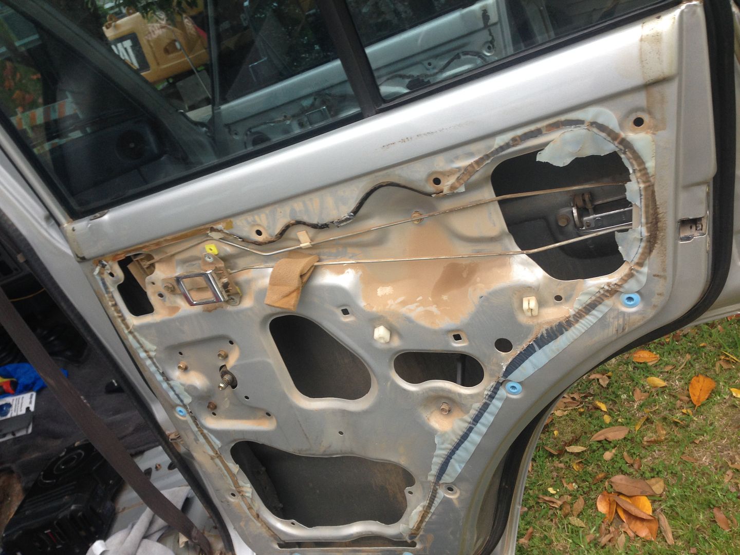 - With the door panels off I got inside the passenger side and cleaned out of some debris around the drain hole.