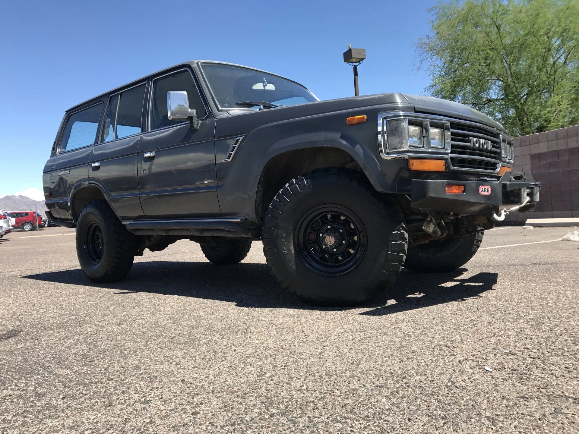 Hey, our new '84 FJ60 was referred to as "The Cadillac" when we showed up at our first Southern Nevada Land Cruisers meeting. One of our first wheeling adventures netted us a large dent in the rear quarter panel, from there on it was "Rough trails, bring 'em on!", the fear of body damage was in the past. That set us up pretty well for the rough runs at our first Glitter Gulch Gambol and many club trips to follow.My cruiser is more of a spectator. I've taken it to wheeling events... other guys have called it a "cream puff" I think I've put it in 4-Hi once... I don't even know why.