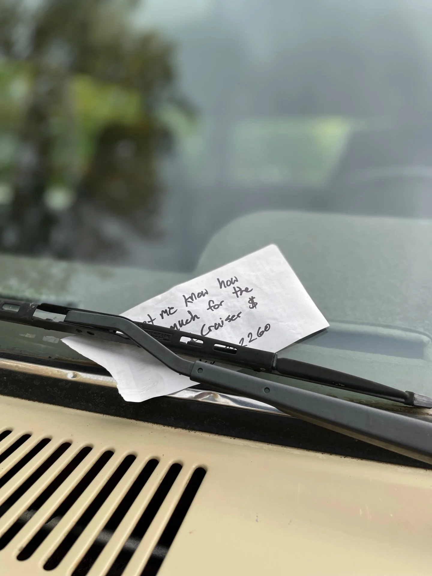While at the boat ramp came back to a note on the windshield. I'm not going to be selling the 60 to this stranger and here's the number if you have one to unload.