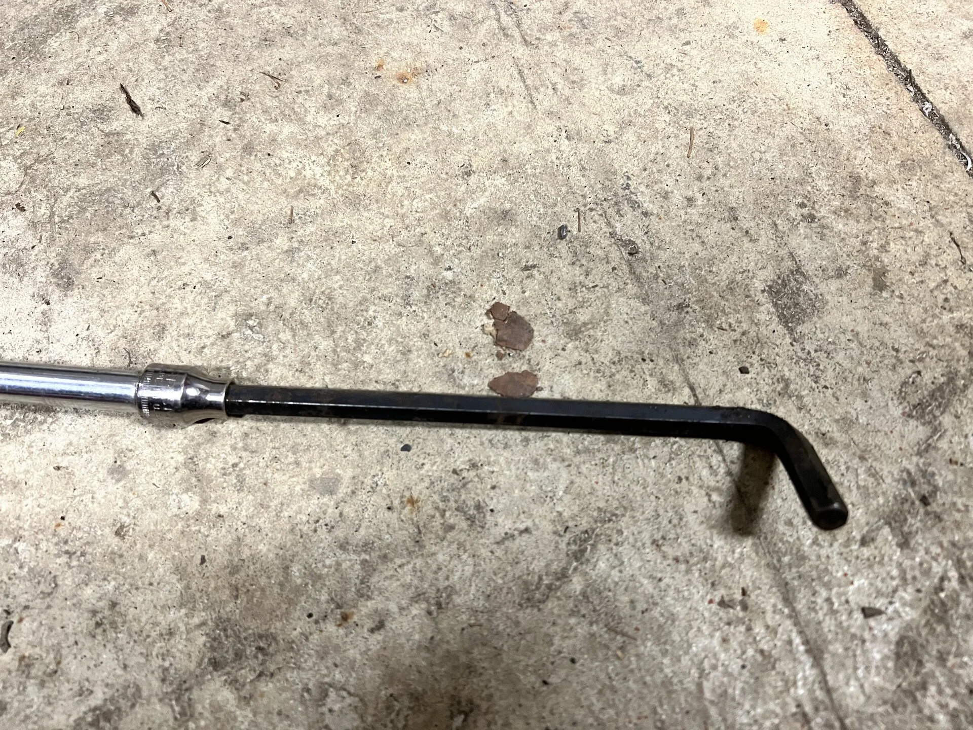Second, I thought I had a full factory toolkit in the 60, but found it was a few pieces short when I went to lower the original spare so I had to improvise. I wound up throwing an 8mm hex key in an 8mm socket with a few extensions, which I then used to lower the spare without (much) incident; keeping it lined up was the only thing I really had to pay attention to. I sprayed some liquid wrench in a few hours before lowering the spare, but it was removed when I had the fuel tank recalll done 2-3 years ago so I don’t think it was really needed.