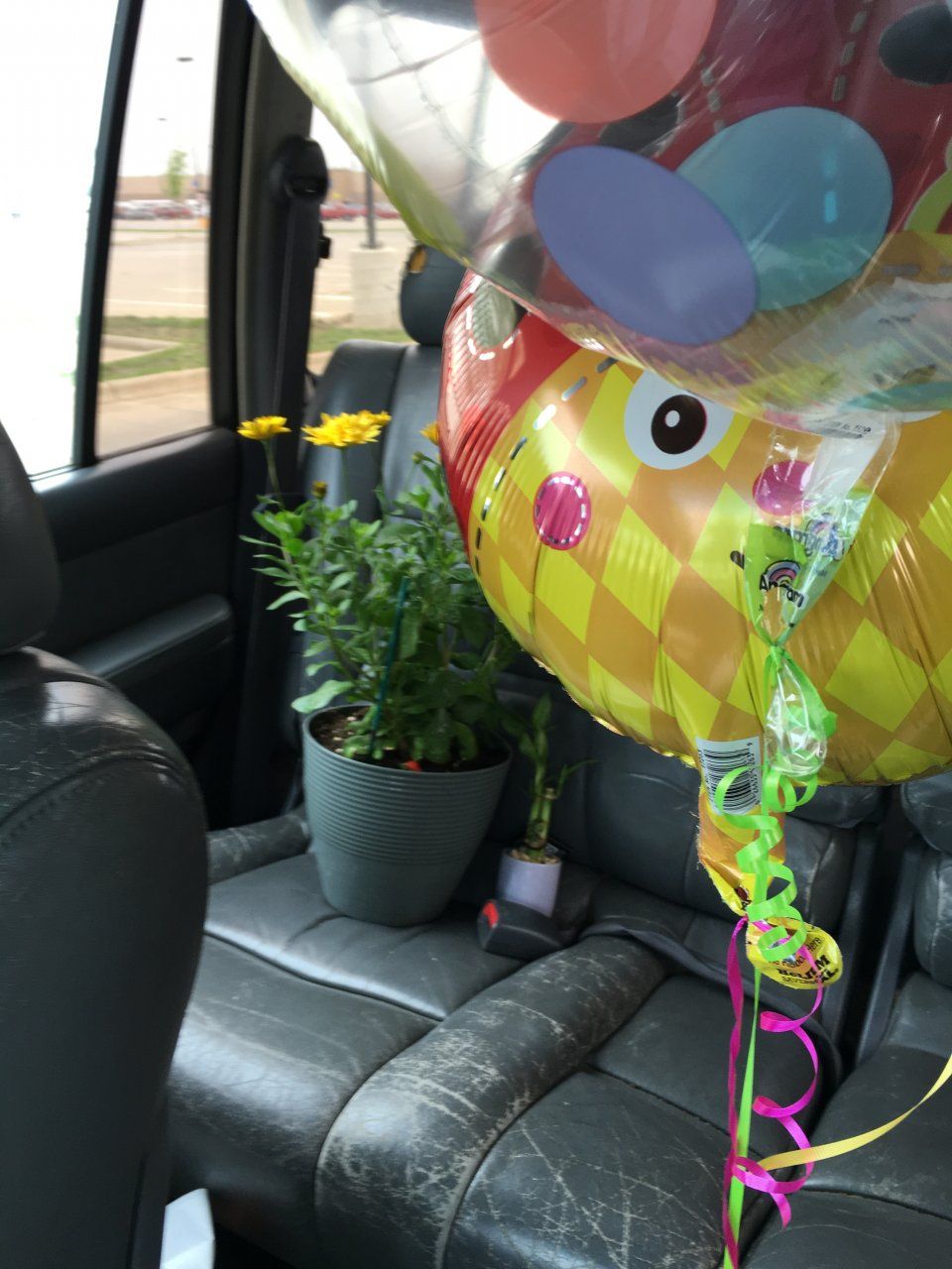 So I loaded up the 93 with a bunch of balloons and flowers for her (she loves flowers and being outdoors). Oh and bamboo. Because bamboo is lucky.
