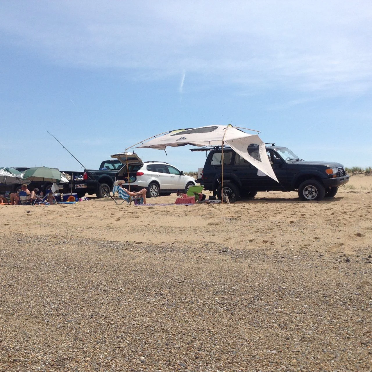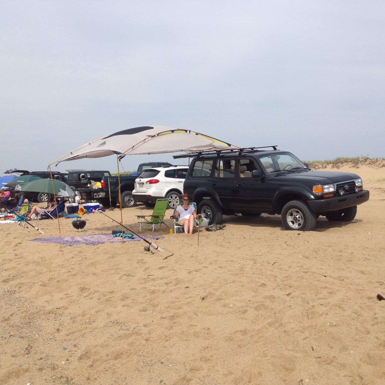 Camping and hitting the beach with the 80 at Cape Cod. Loving my new kelty awning tent.