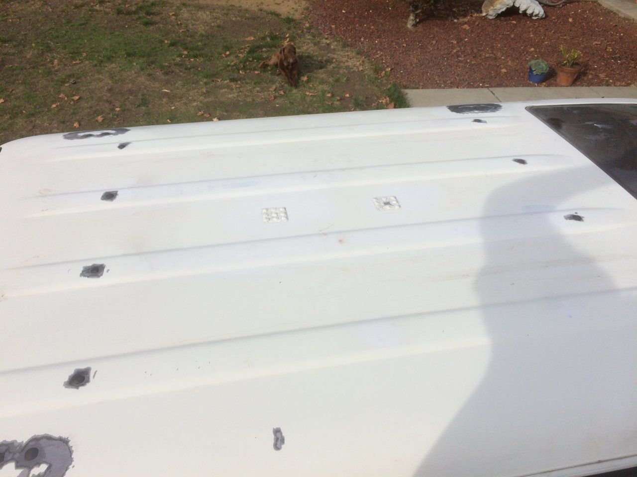 Patched two antenna holes and plugged roof rack holes with JB steel stick in prep for Monstaliner in 045 white.
