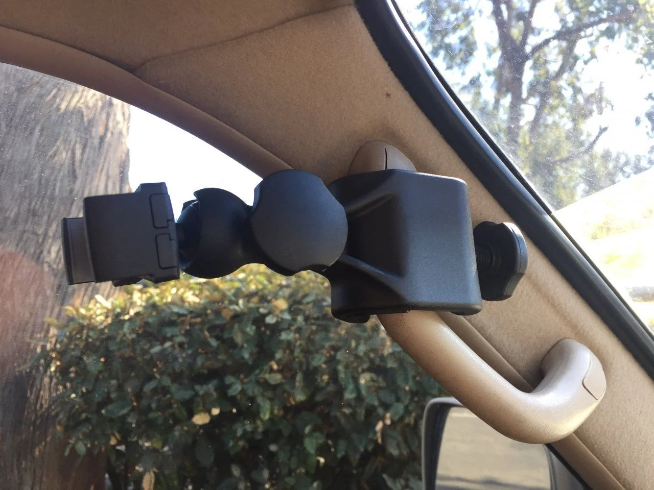 I did the same with RAM mounts and ended up attaching the mount to the bottom of the grab bar. While better it starts to interfere, at times, with my hands while turning. I keep thinking I'll buy another piece or two to make a 'v' shape so the phone holder sits just about flush with the th grab bar. So little dash depth on these old rigs.