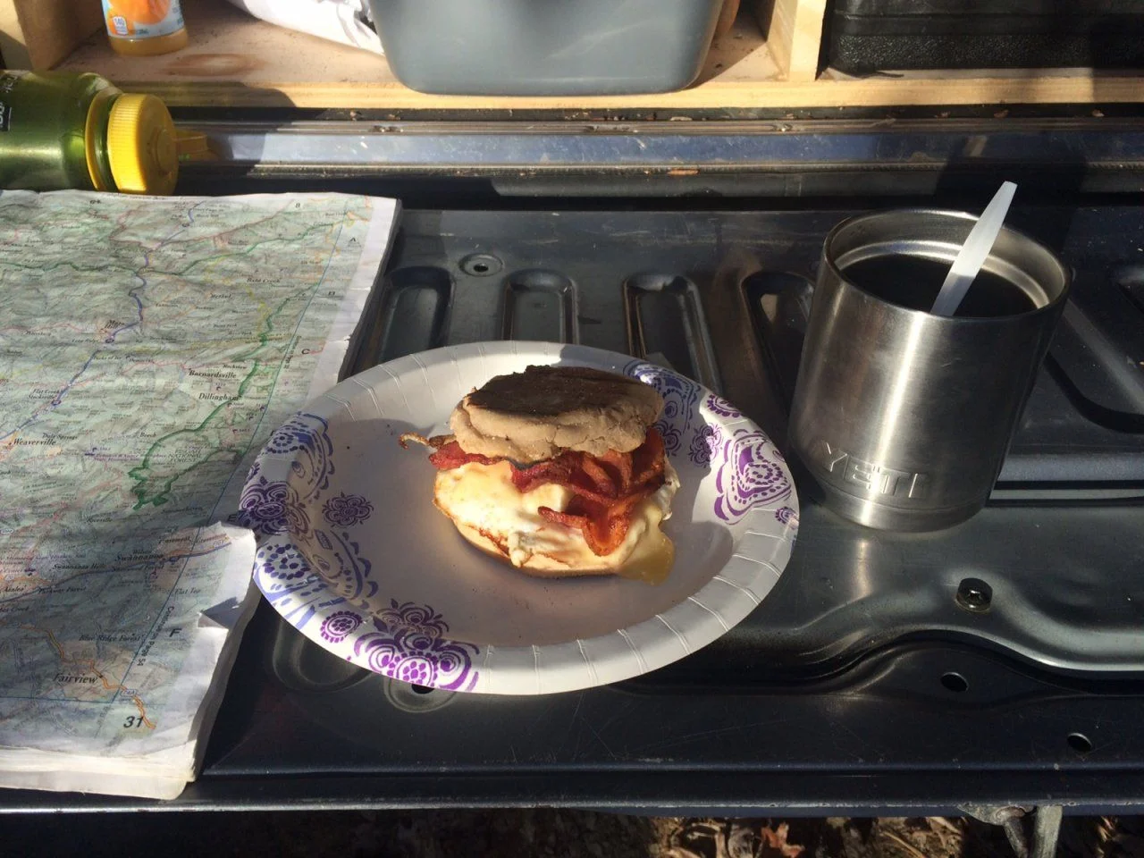 Woke up this am and cooked a new years breakfast and java on the tailgate and mapped out the day..... looking for dotted lines in the delorme back roads atlas