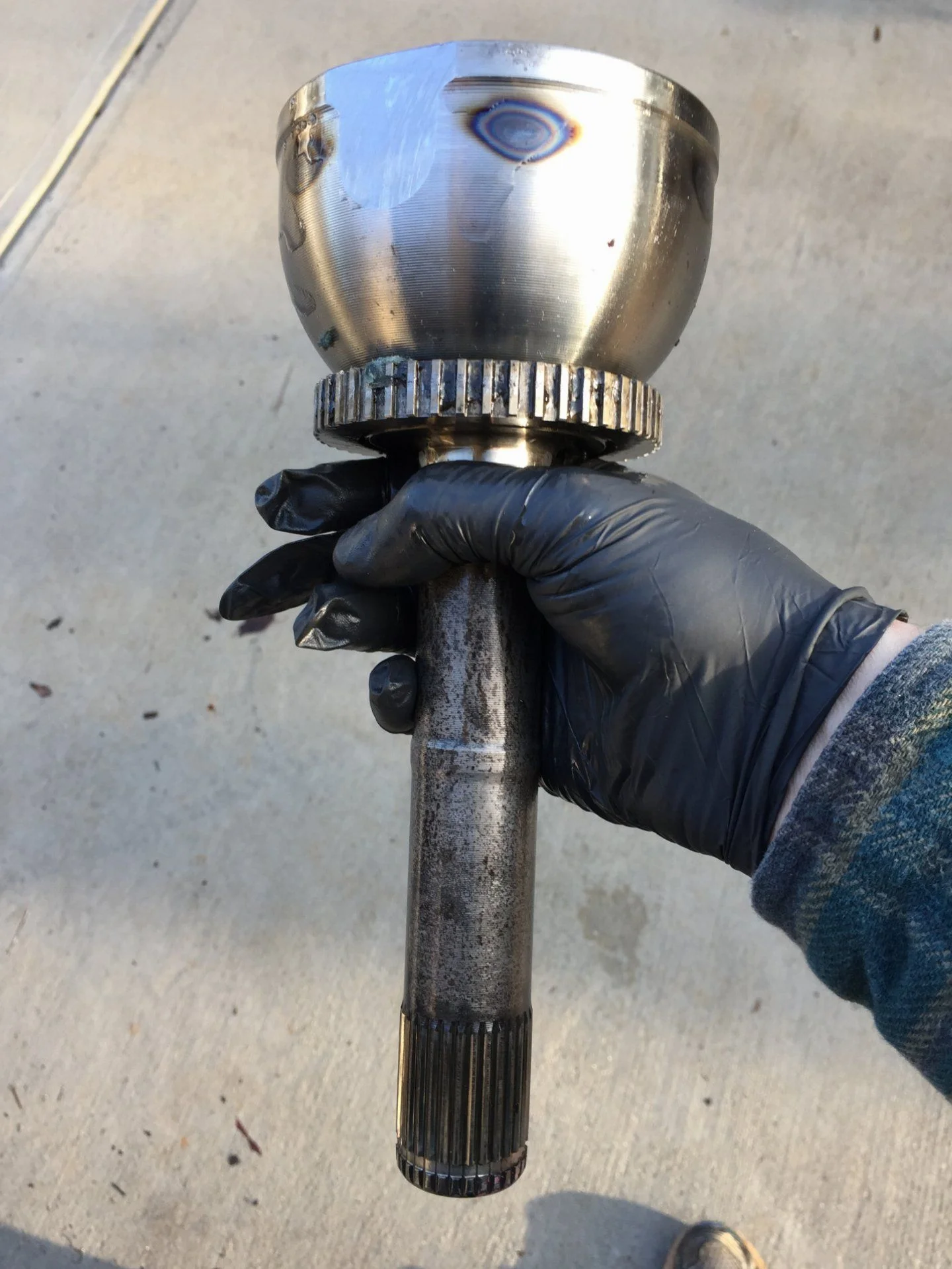 Tore down the front end for the typical birf rebuild, only to discover I need to replace the birfields. Uhg. Well, at least I got to spend some good quality time with my son and teach him the inner workings of a CV joint.