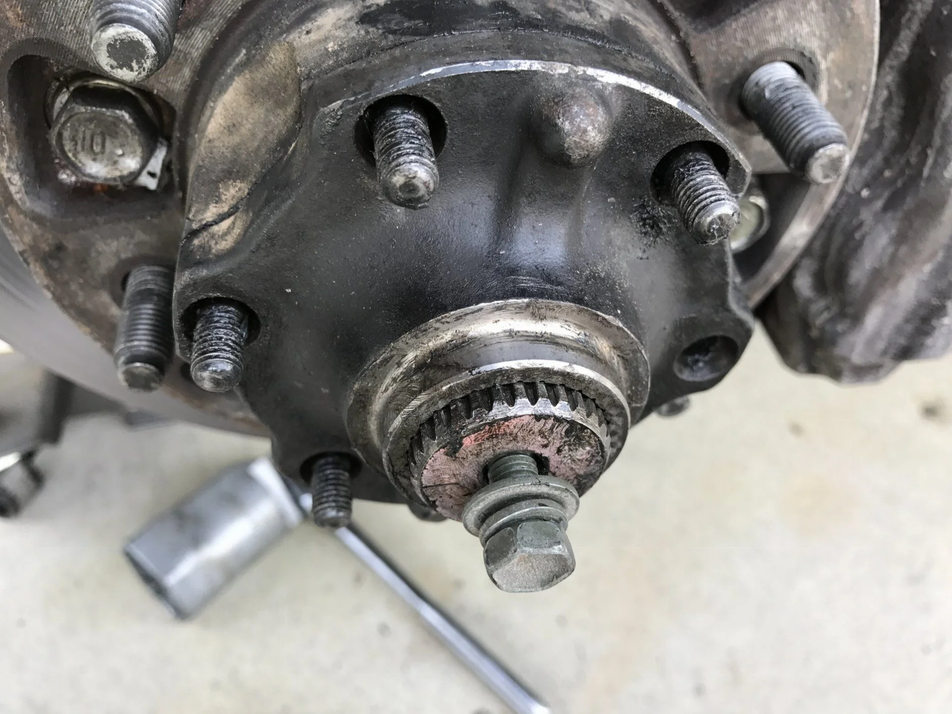 Local mudder came over today to assess his truck and see why it drove so squirrelly. Turns out the lift on the truck didn't have the panhards adjusted. This forced the front axle to the passenger side and the rear axle to the driver's side. He was also missing some bumpstops. But his biggest issue, and why it drove so harshly, was the driver's side wheel bearing was badly in need of pre-load. It was a wobbly mess. Luckily I had some spares to also replace his flange stud and hardware.