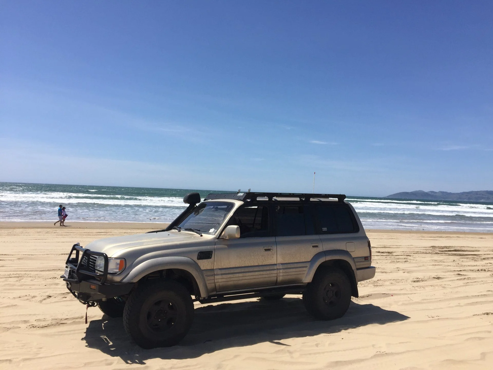 Yanked him out from tHe huge hole he dug with my winch but he couldn't move an inch due to the soft sand. So I had turn around put in 4low and dragged him to the gate.