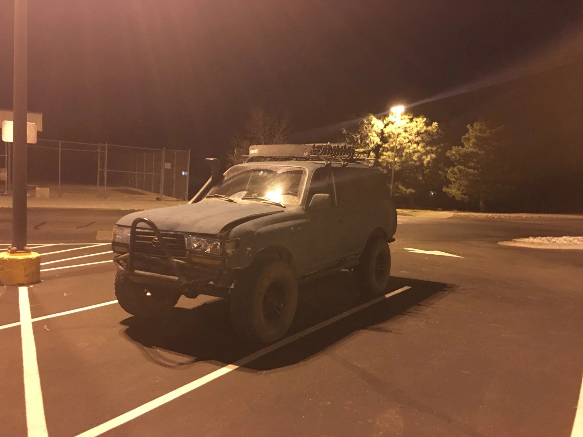 Popping the curb at speed bent the driver’s side radius arm and I don’t know yet if the axle housing is bent, but given the arm gave I am hopeful. My stinger did its job taking the pedestrian pole down and under, but the tube part of the bumper is a total loss as it tore bending back.