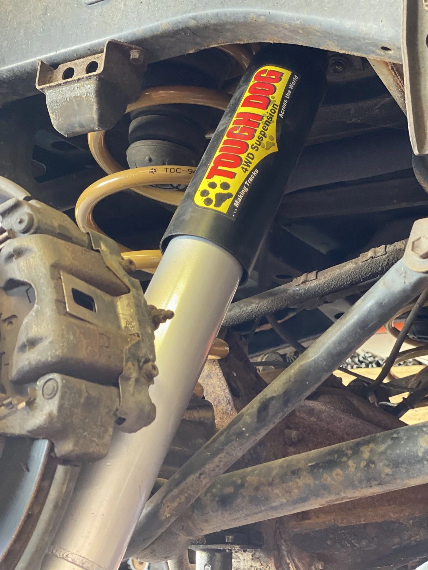 Installed my Tough Dog adjustable suspension from @TRAIL TAILOR to replace the sad clapped out 179k stock worn goods. What an improvement!! I love the adjustments. Handles like a freaking Swedish Gymnast. Can’t wait to click the adjusters back and try it on the trail. Thanks J