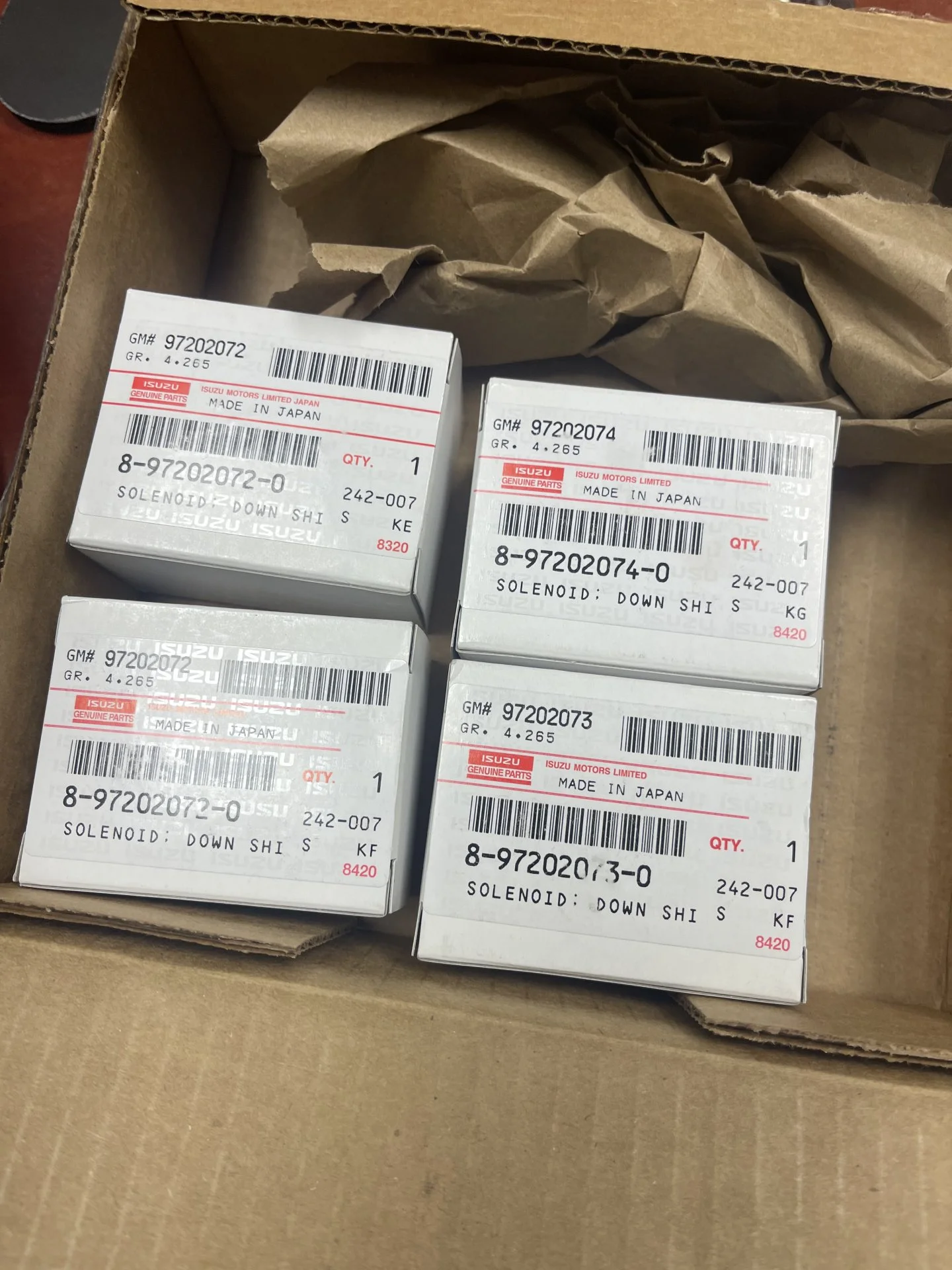 Specifics on the vehicle tranny. 1994 a442f. 4 solenoids from Amazon $25 per piece. Cheaper than from Cobra Transmission and certainly cheaper than from the dealership. Boxed as Isuzu OEM parts, parts marked as genuine Aisin. I know this has been covered in the past but figured it doesn’t hurt to share it again.