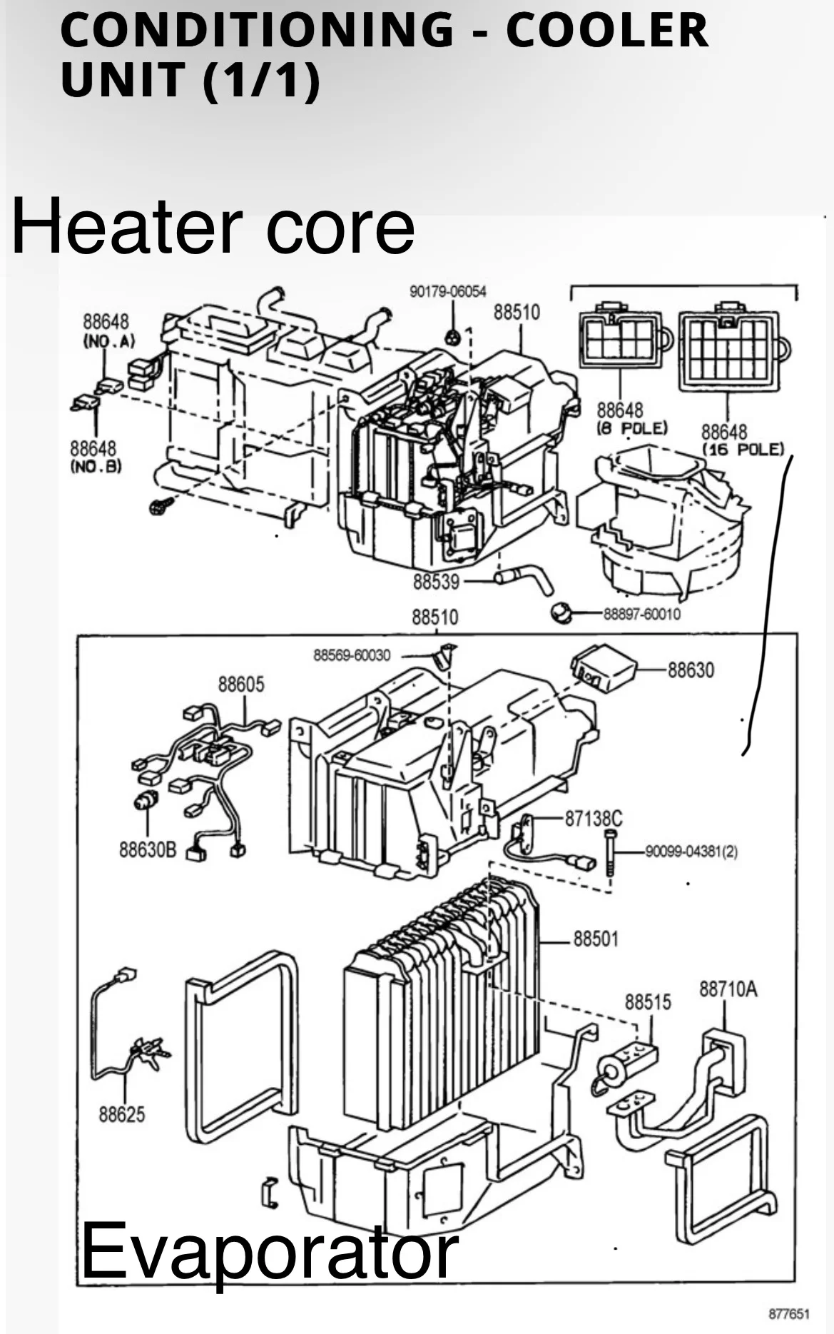 Here's a visual aid. Not too bad to get into, unlike the heater core.IKsokudo is this evaporator related to the AC system? Where is it located on a FZJ80? Thanks!