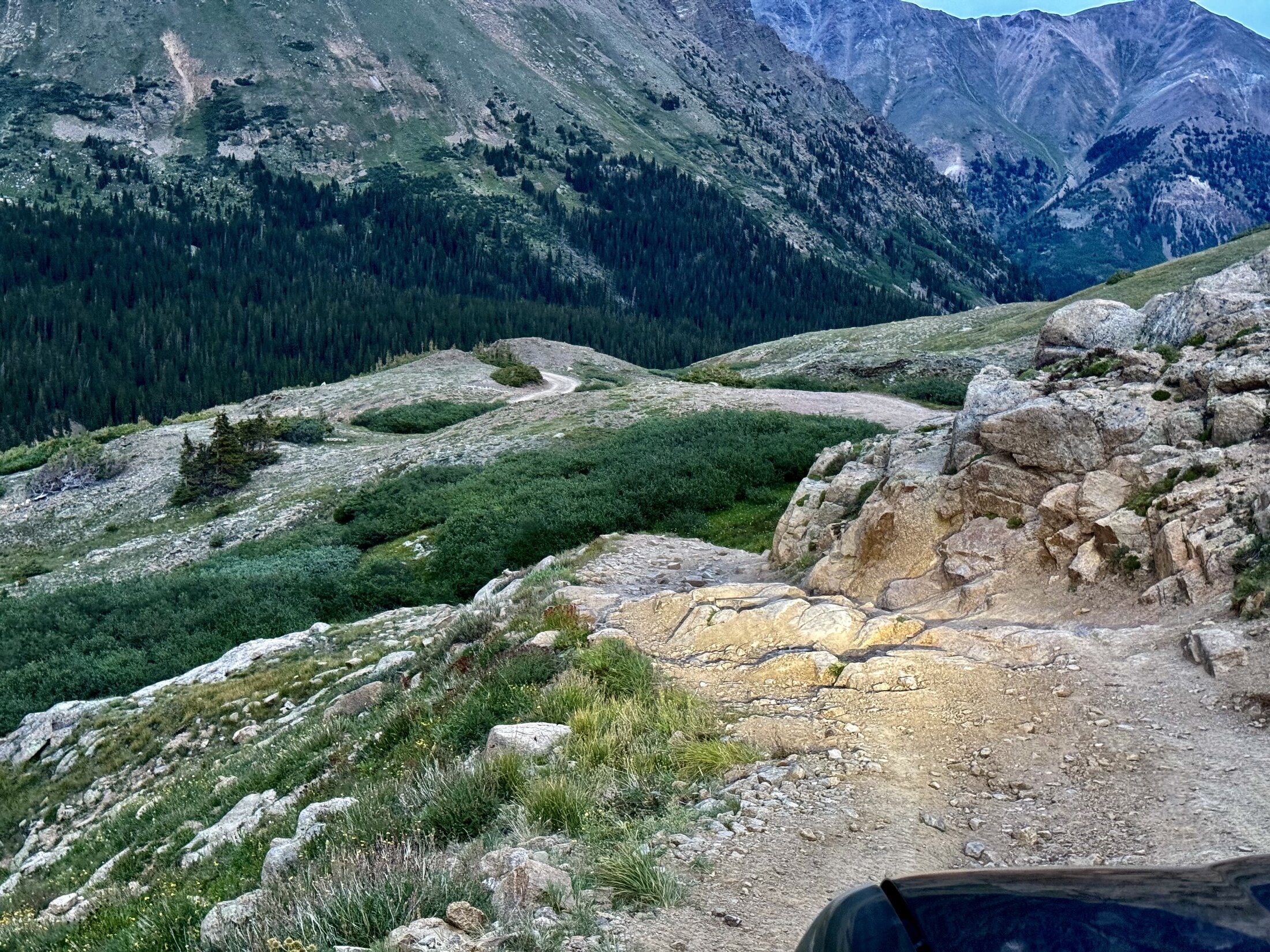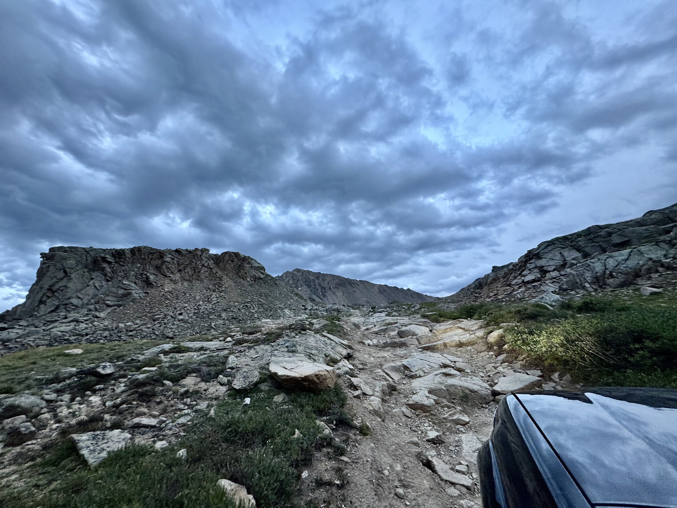In the morning we had a relaxed breakfast and let the day warm up some as the sun climbed higher. Beautiful day with just enough cloud to give the sky some personality but not keep the sun off our skin. In Alaska you really enjoy that kind of day. Our only goal for the weekend was to relax and enjoy being where we were. We followed a once forgotten trail that (so far) only a few others have re-discovered about 2000 feet higher up into Gold Creek Pass and then up to the gently rounded higher slopes above it. In the alpine tundra it was just a matter of pointing the Cruiser up the hill once we were up in the pass itself. Once we were up there, the view up the valley we had come out of was totally different than the perspective down low. Of course.
