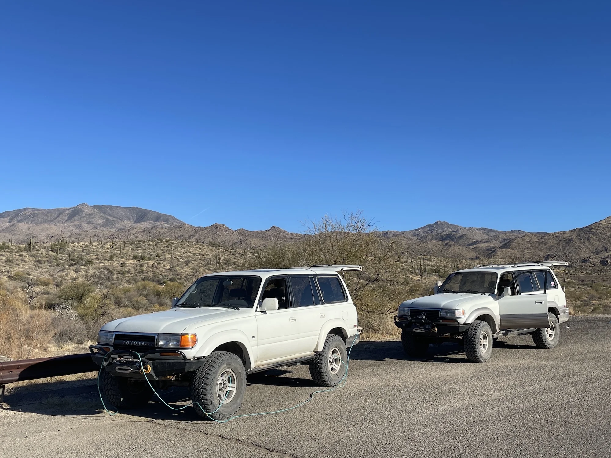 Last - air-up just at Highway 87. Both trucks have Puma air compressors (of relatively similar vintage) installed, but apparently Lexus electrons are better than Toyota electrons