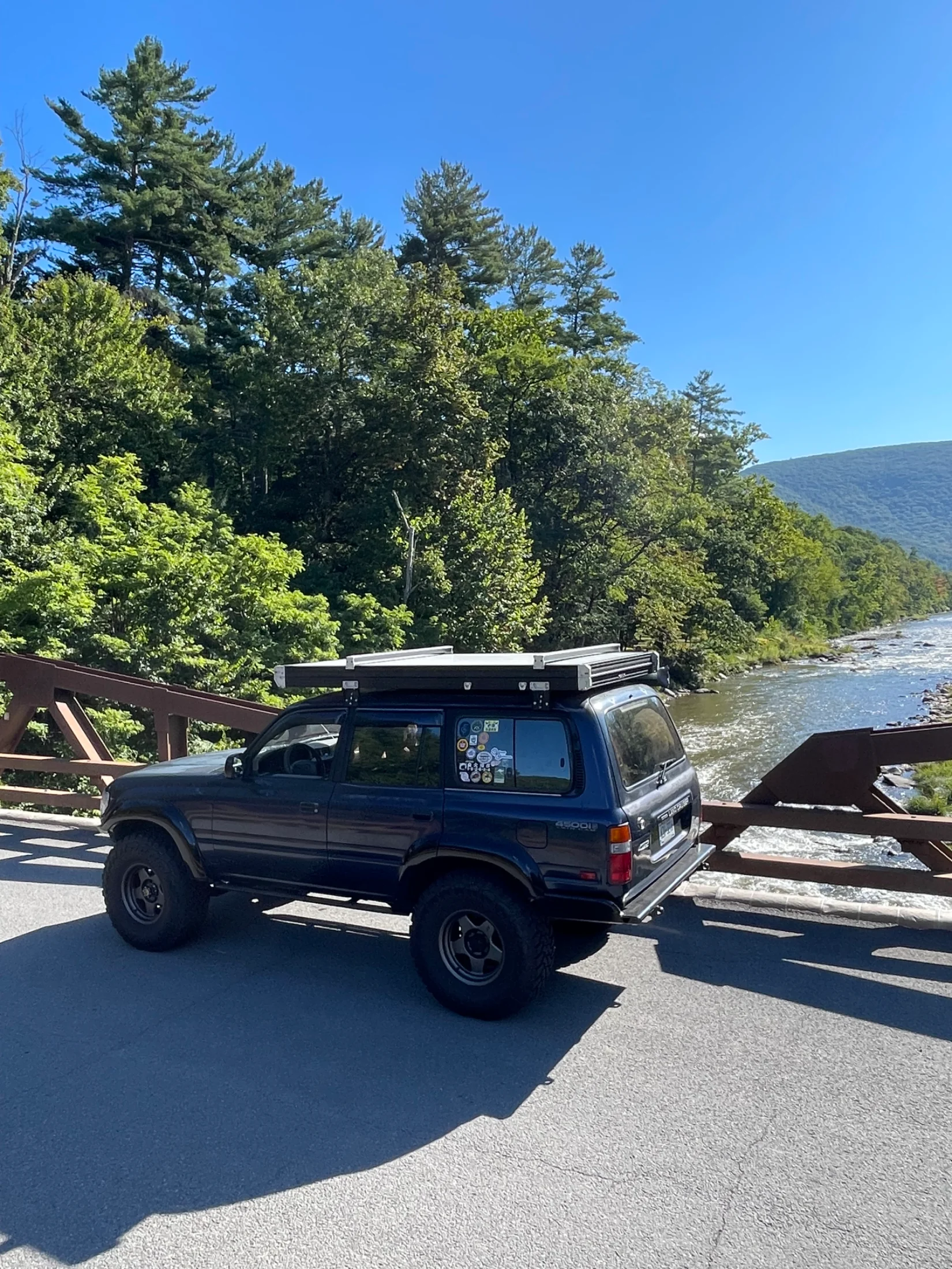 Just fine, I am running both front and rear swaybars. You do feel that something is up there compared to a naked roof. In terms of weight, it weighs 140lbs and bolts direct to the gutter rails. I didn’t want a roof rack that gets filled up by a rtt and then you can’t carry anything else, the gfc doubles as a rack and sits as low as possible to the roof line. She can cruise in the right lane going 55 or go 85 in the left lane passing people no problem.