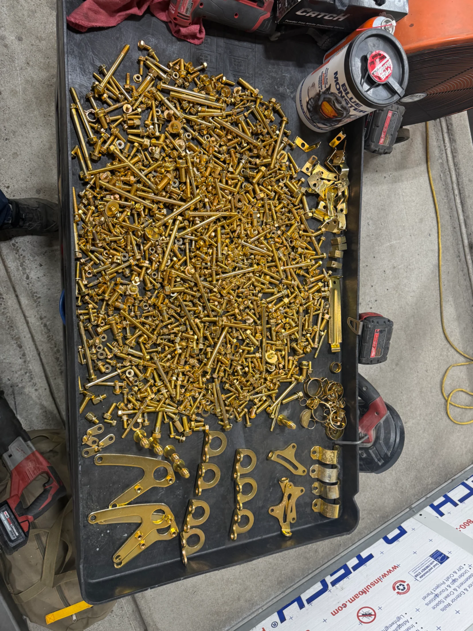 Fresh batch of hardware back from the zinc platers! Enough to build a couple engines.