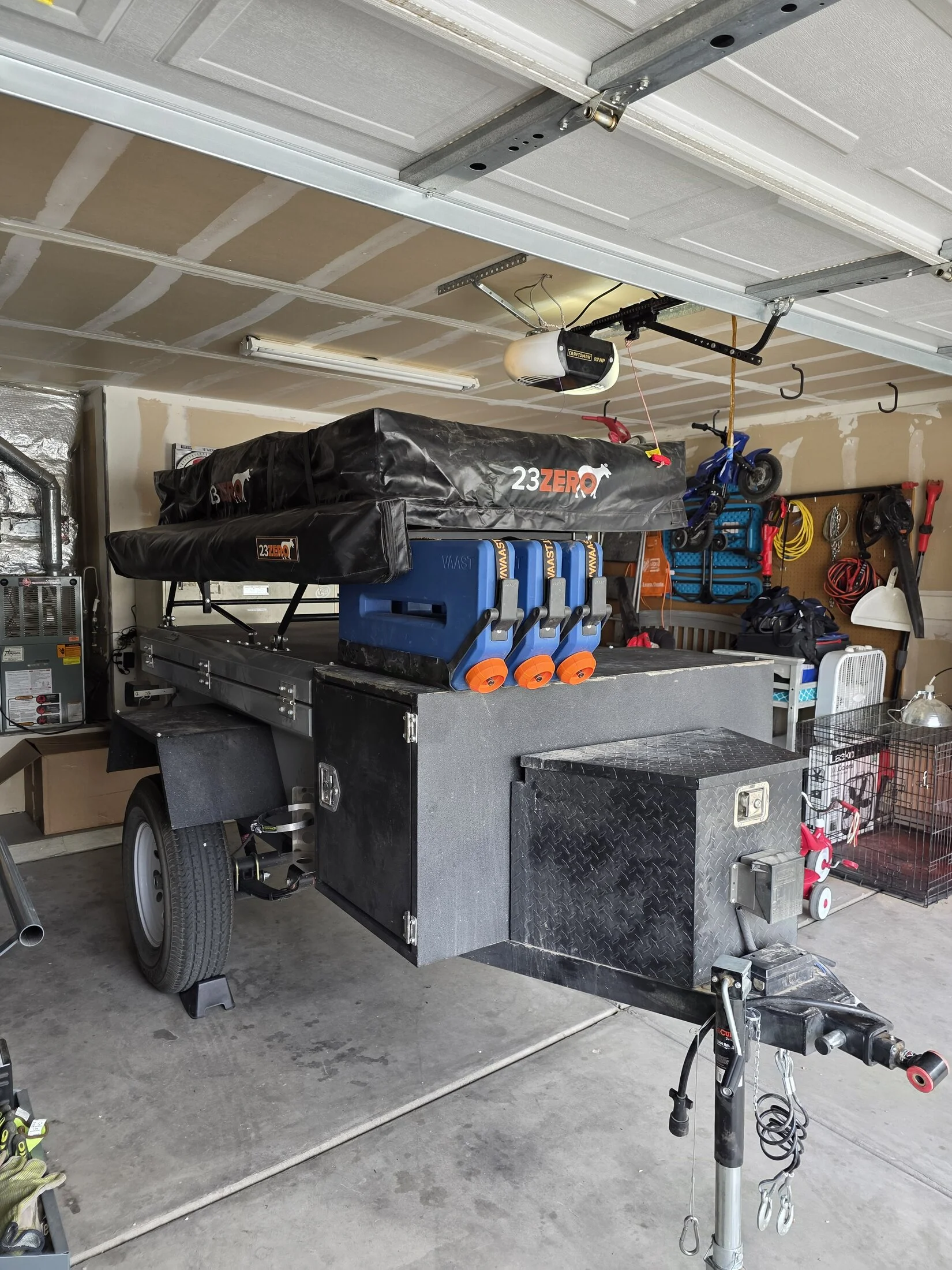 Started building it for the long trips.... rockers (steps for the dog) and the rear swing out.
