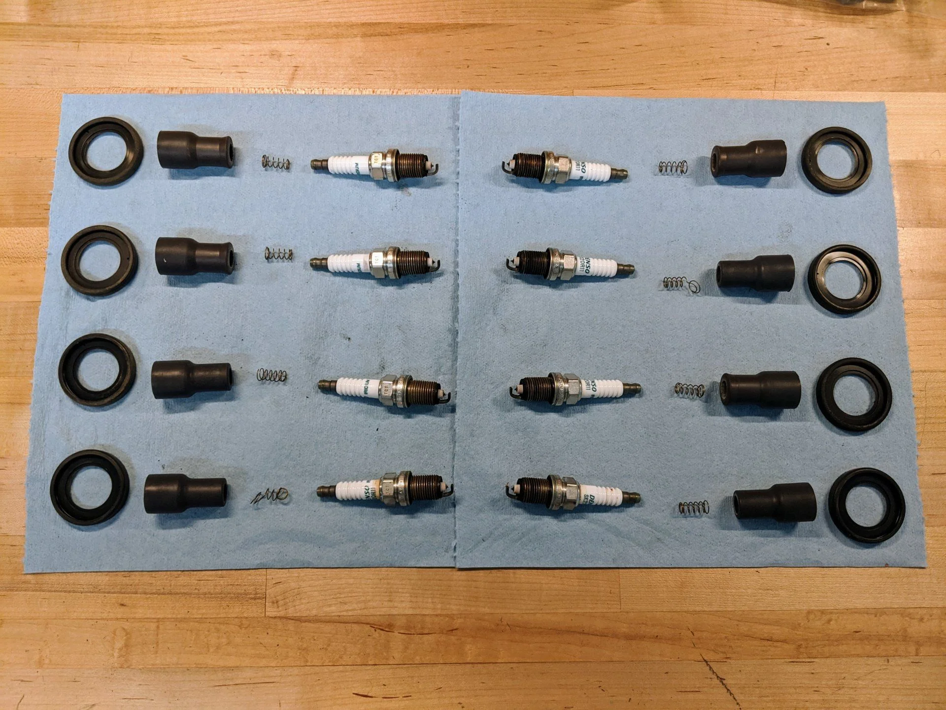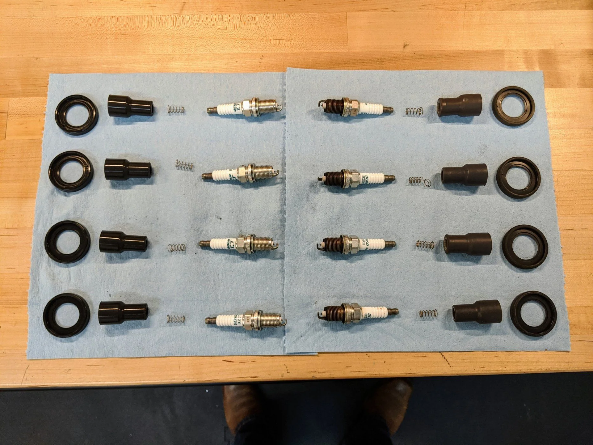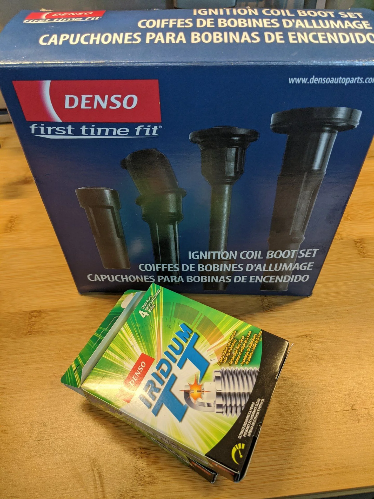 Installed new spark plugs and ignition coil boots. The old plugs were Denso Iridium Long Life and were at roughly 80,000 miles. Coil boot ages unknown.