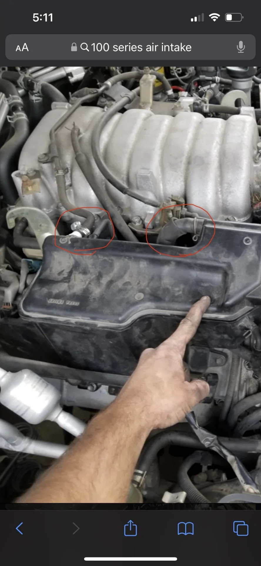 Changed spark plugs and coil packs on the 100 this weekend. Sweet deal on coil packs from denso on Amazon right now. 150$ from Napa auto and only 40$ on Amazon!!! While I was in there I noticed some old hoses going to air intake . Can anyone help identify these hoses in the picture? Toyota parts guys are useless here unless you give a part # (not my pic but you get the idea)View attachment 3081636