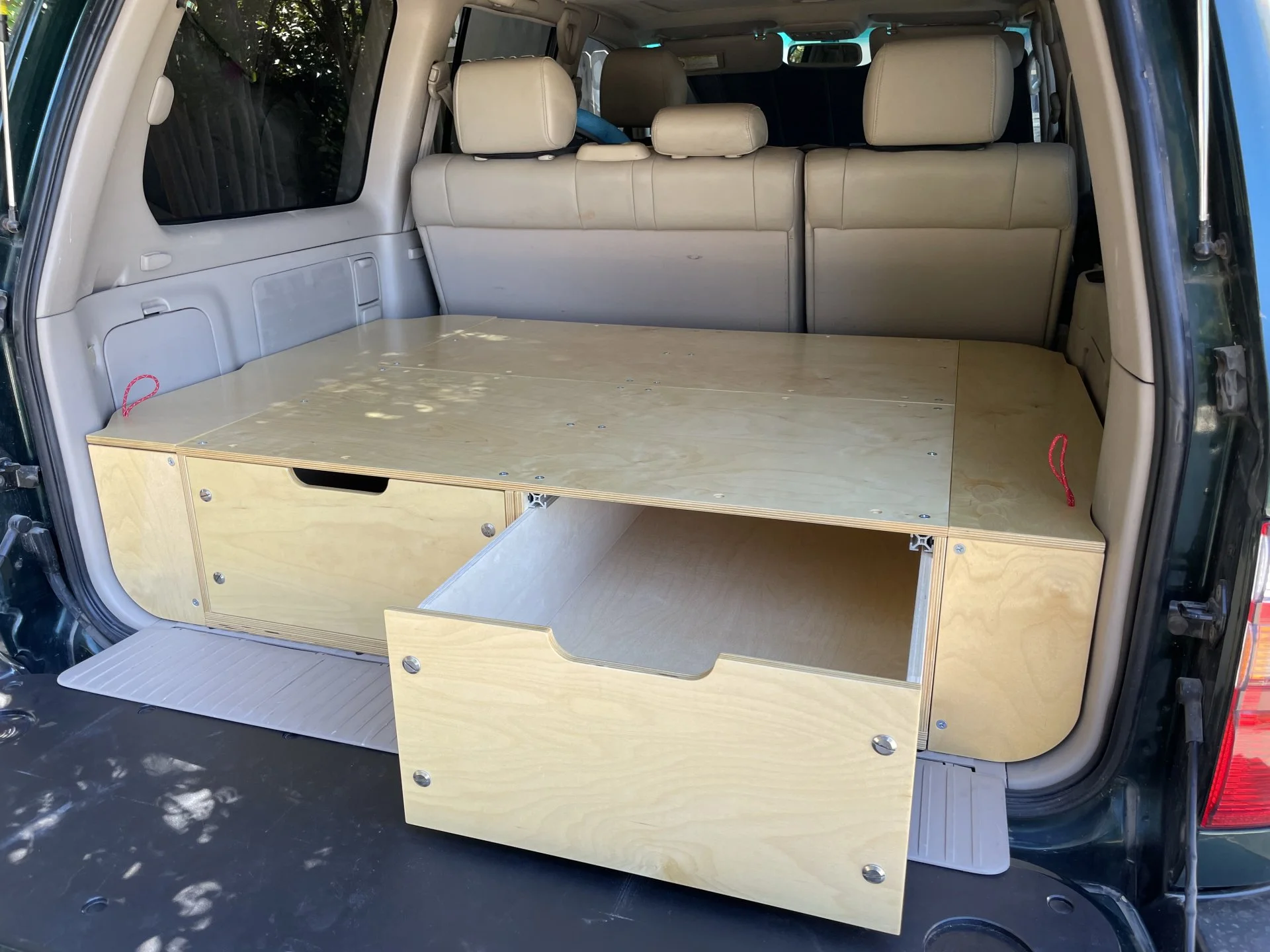 Do you happen to have a cut sheet/list or dimensions for your central box there? I wound up having to buy myself another sheet of plywood for the siding I'm making for inside a screen porch project at my house, but 95% of the remainder is going to be the start of this kind of situation. Also- do you have glides under the boxes, or is it the HDPE plastic slide method? I really like what you did with the 8020 to square up the top, too- makes a lot of sense. More than building a whole 8020 frame, I think. 🤙