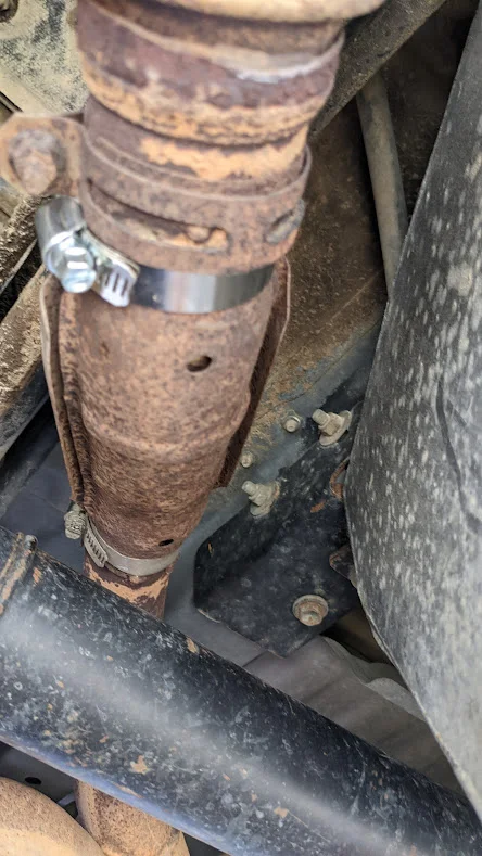 Repaired a pesky exhaust heat shield rattle. I decided to "repair" it instead of pulling it all the way off due to its proximity to the gas tank. We all know that the 100 has hot gas ventilation issues :poop: