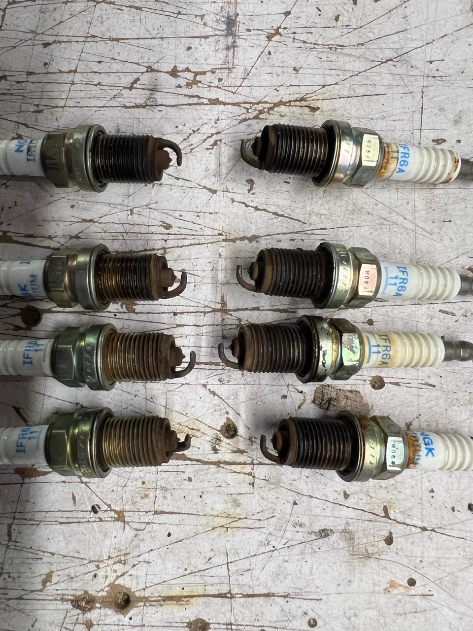 308k mile service. Changed oil, filter, greased everything, cleaned throttle body and mass airflow sensor, rotated tires. Also changed plugs with NGK. Old ones I guessed had 100k on them, but they were definitely worn out. Also installed the lower control arm torsion bar reinforcements that I’ve had sitting on the shelf for the last year. All ready for Southern Cruiser Crawl next weekend!