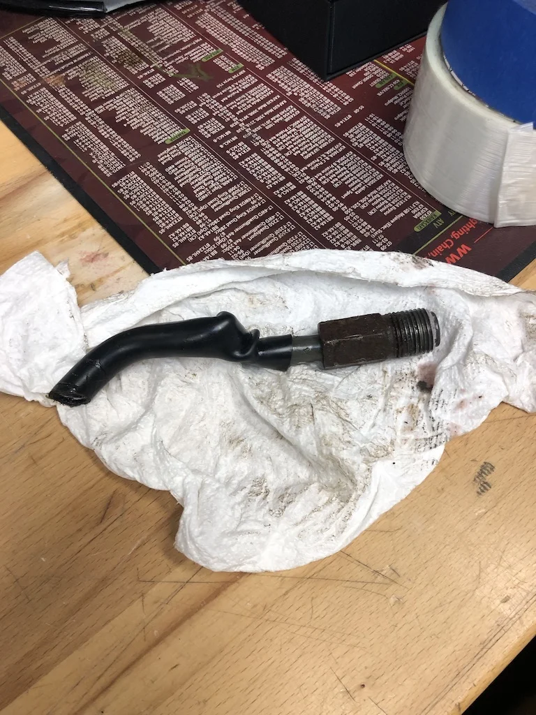 So with all that DIY tech support and instructions you'd assume its a pretty straight forward job- right? For a one and done project- technically it was fairly easy, but for me time consuming. The prep-steps took more time than physically taking out the rack. And then some stubborn parts like the 19 year old return line fitting that freezes up and you twist the return line until it looks like a piece for licorice. At the steering rack the return line fitting was frozen to the end of the tubing- nothing to do but embrace the sinking feeling that you're going to replace more parts.
