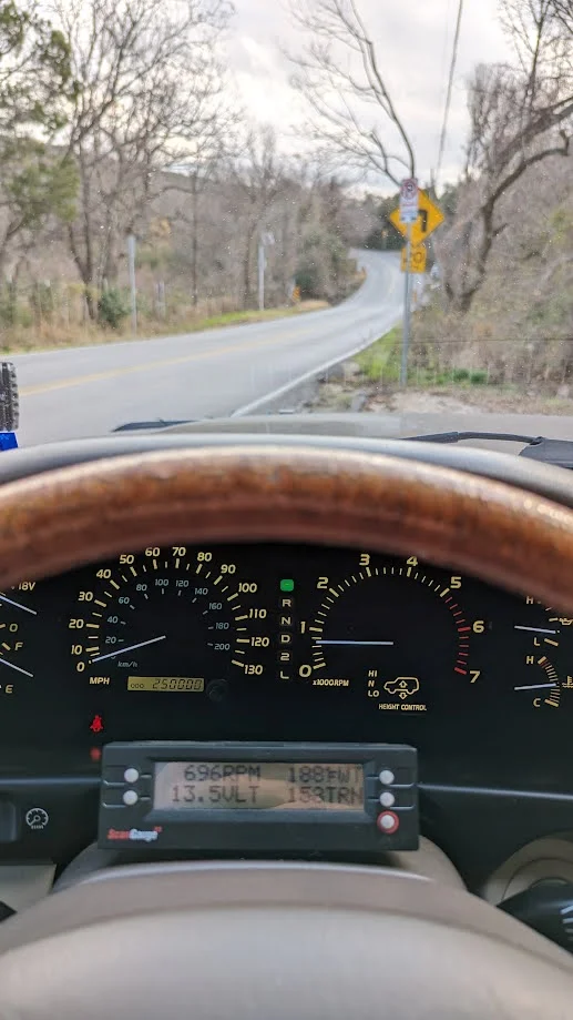 Make sure you drive Christmas Mountain if you haven’t.Recent completed work includes reattaching rear sway bar, flush and fill on brake fluid, grease all service points, weld lugs on spare tire mount, installed new OEM rear driveshaft, alignment, and tire balancing. She's running and driving better than the day I bought her, ready for Big Bend/Terlingua/Marfa this weekend.
