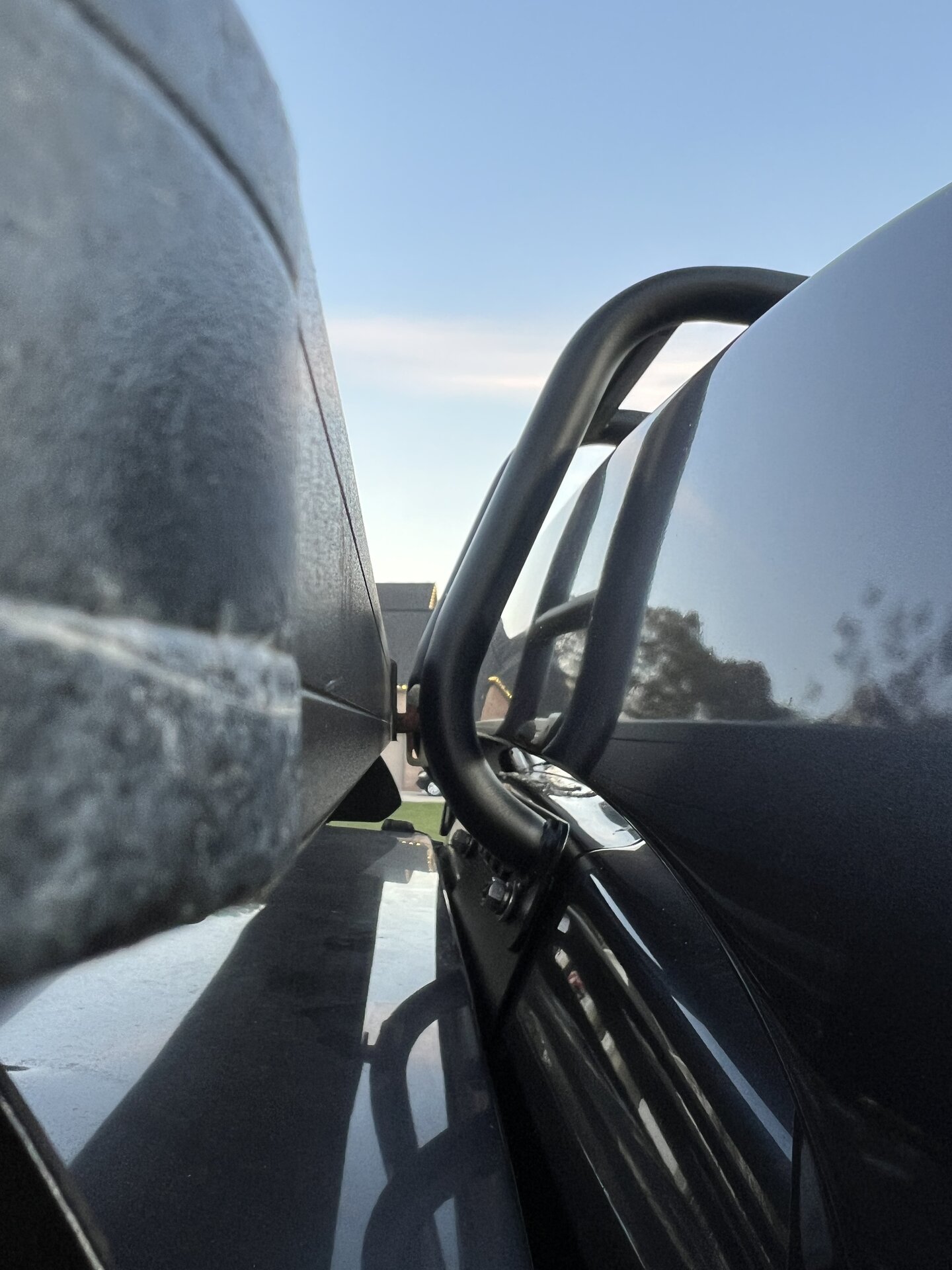 It's secure . Never seen any issues with the weight put on these from any other vehicle.Putting body weight on the upper hinges can’t possible be good for it…..???