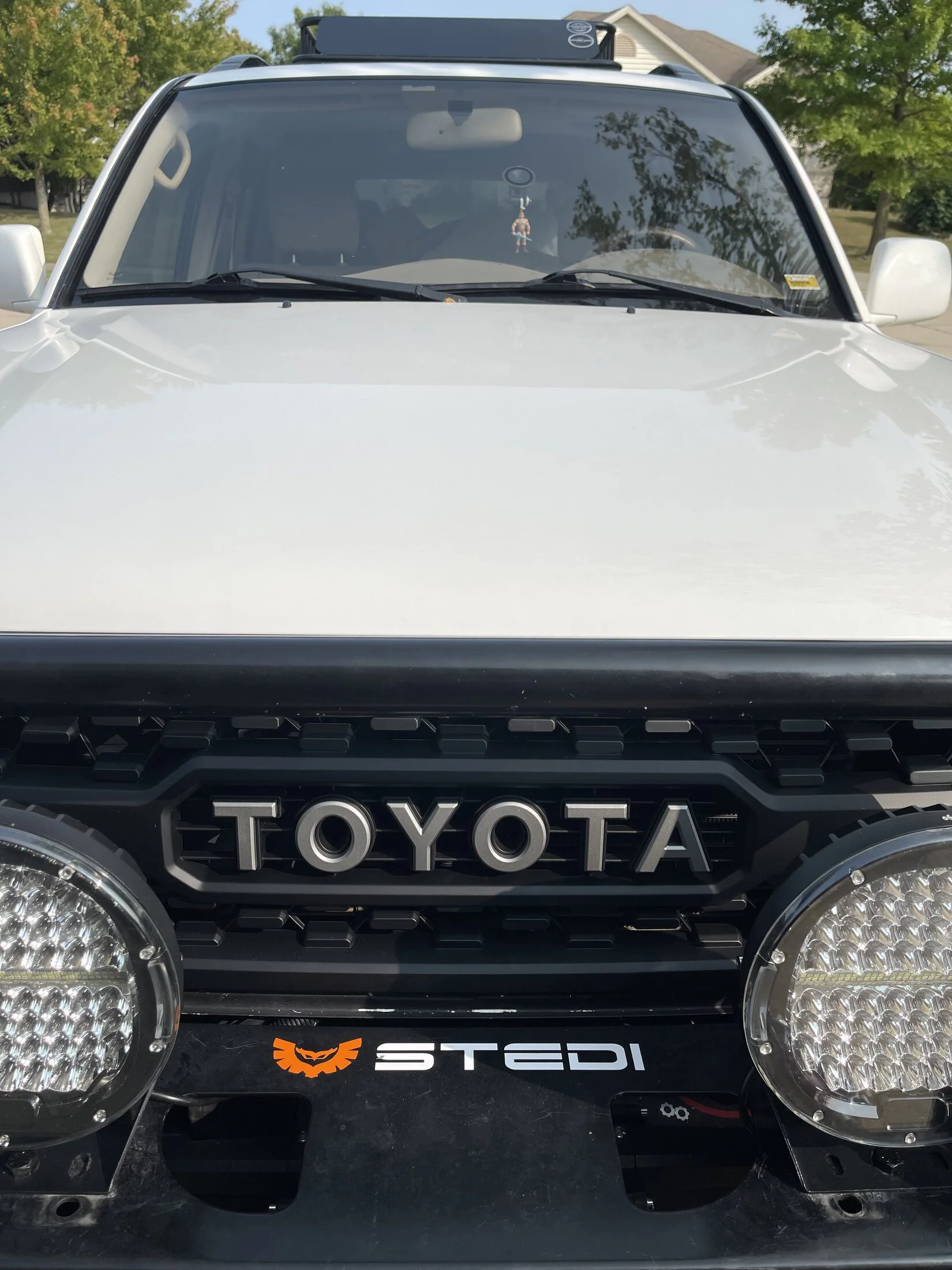 *Added a TOYOTA grille from Trail Runner Customs. I moved the 9 inch lights out as far as I could so I can see more of the grille