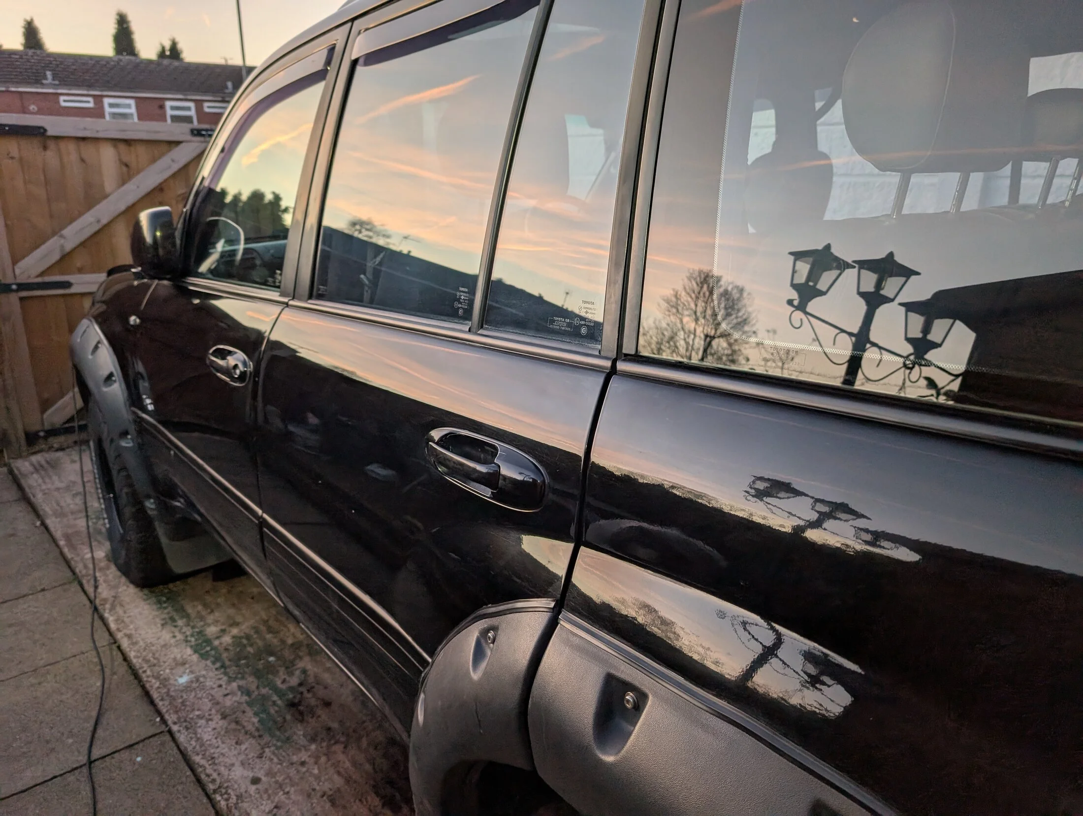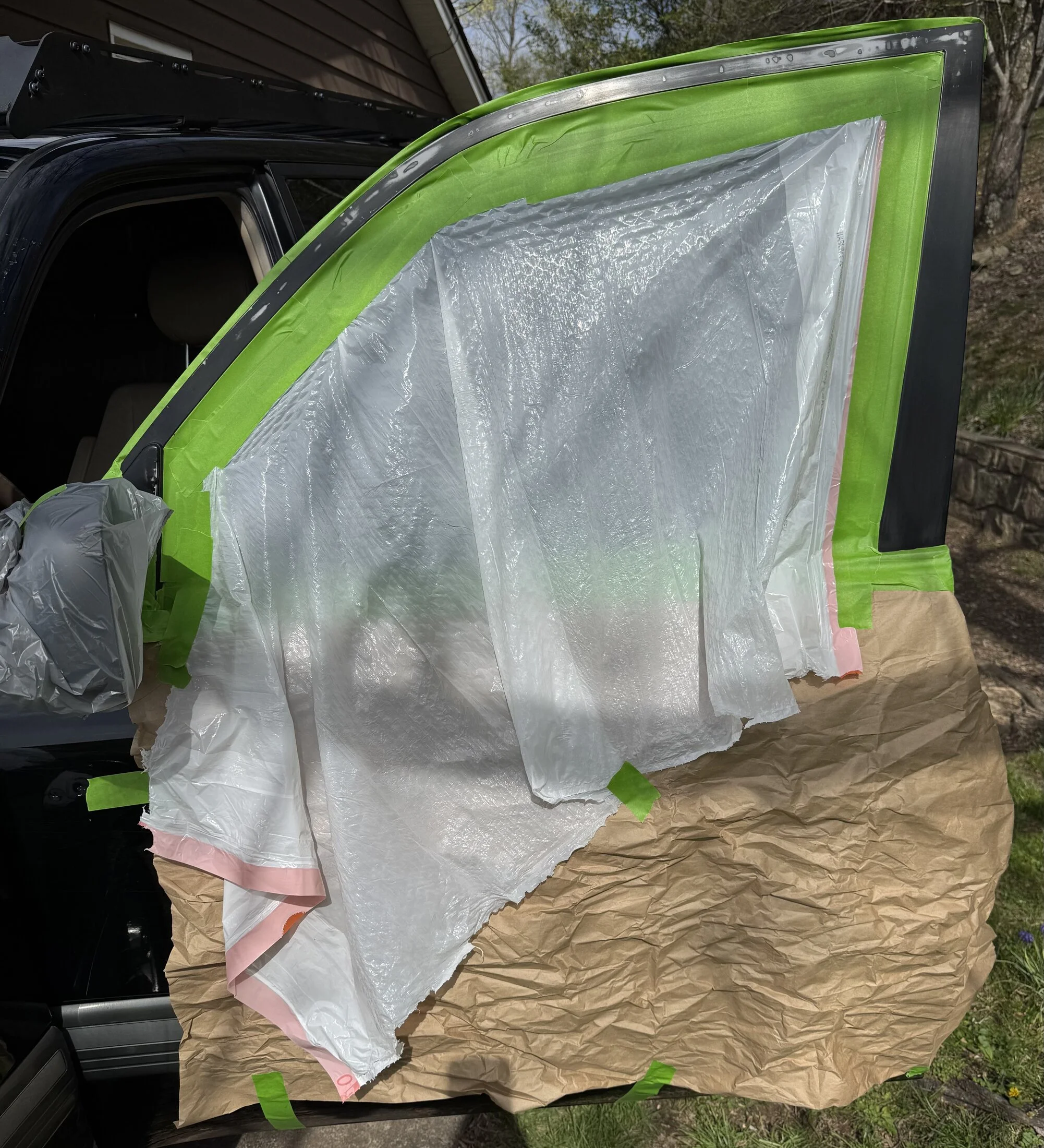 Also removed the old, cracking and peeling off vent visors on the front doors. Cleaning the old adhesive was a mess and as expected, destroyed the pain under it. Much to my surprise, Rustoleum satin black is just about a perfect match. We’ll see how long it lasts.