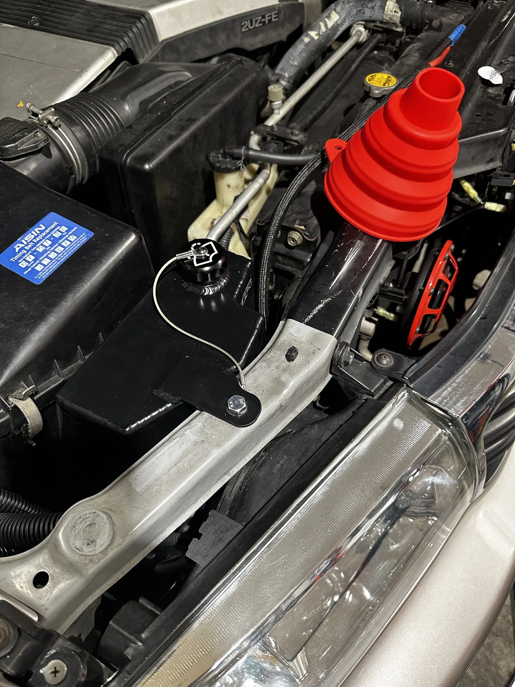 3. Stuff the cone end of the AC cleaner into the AC drain, and shoot the whole contents of the can into the AC airbox. The Toyota instructions say shoot half the can and then repeat… I would shoot the whole can to ensure that the air box fills up to the point where all of the AC evaporator is covered in the cleaning foam.