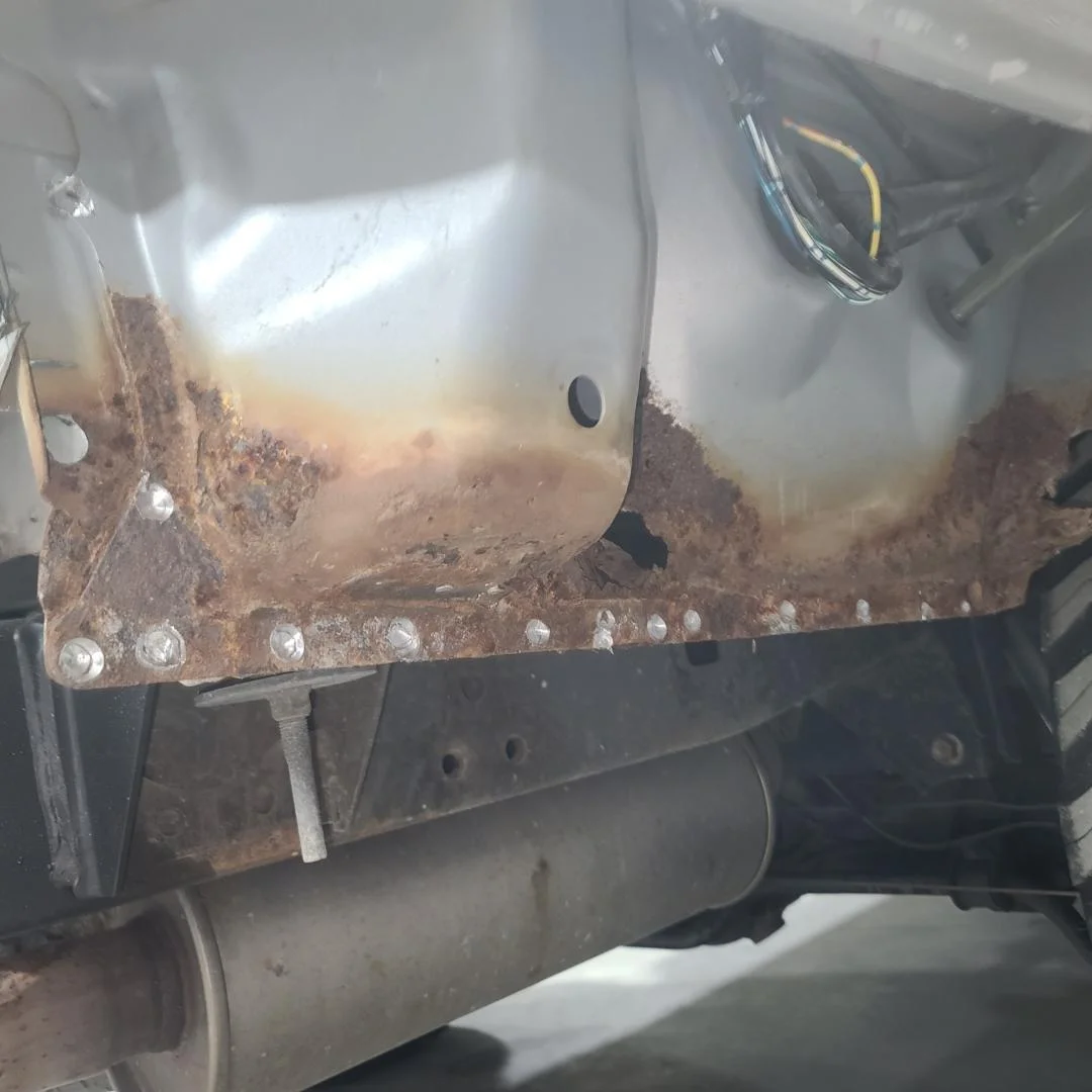 Where did you buy the replacement sheetmetal? I have a small rust spot on the rear quarter underneath the rear bumper I need to repair. Same spot as yours just not as bad.Replacing the brownwith a little green