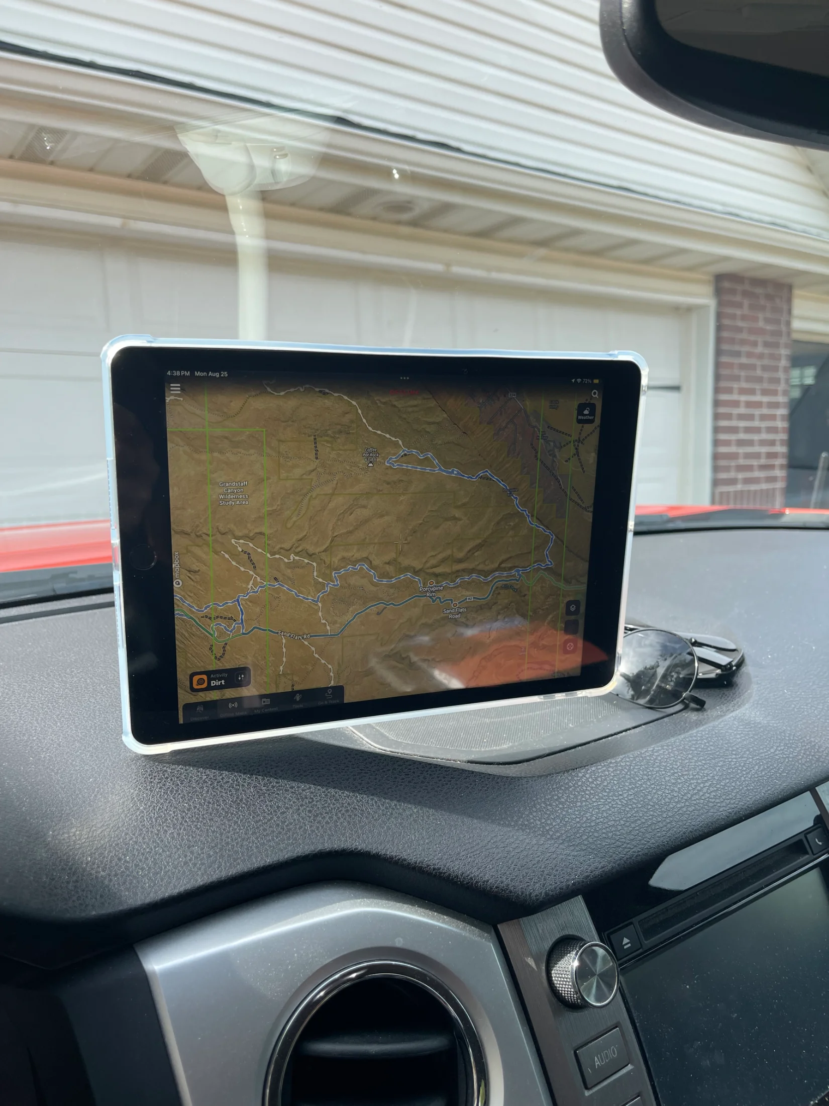 Bought an iPad and am trying out the 4" SeaSucker brand suction cup mounts. 120-lbs of force. Testing it out on my Tundra until I can get out to Moab in two weeks to slap it on the 100's windshield. So far so good on the Tundra. They actually have a piston you push that sucks all of the air out. They are designed for boats in the waves so I figure it will hold up to most of Moab. Bike racks too!