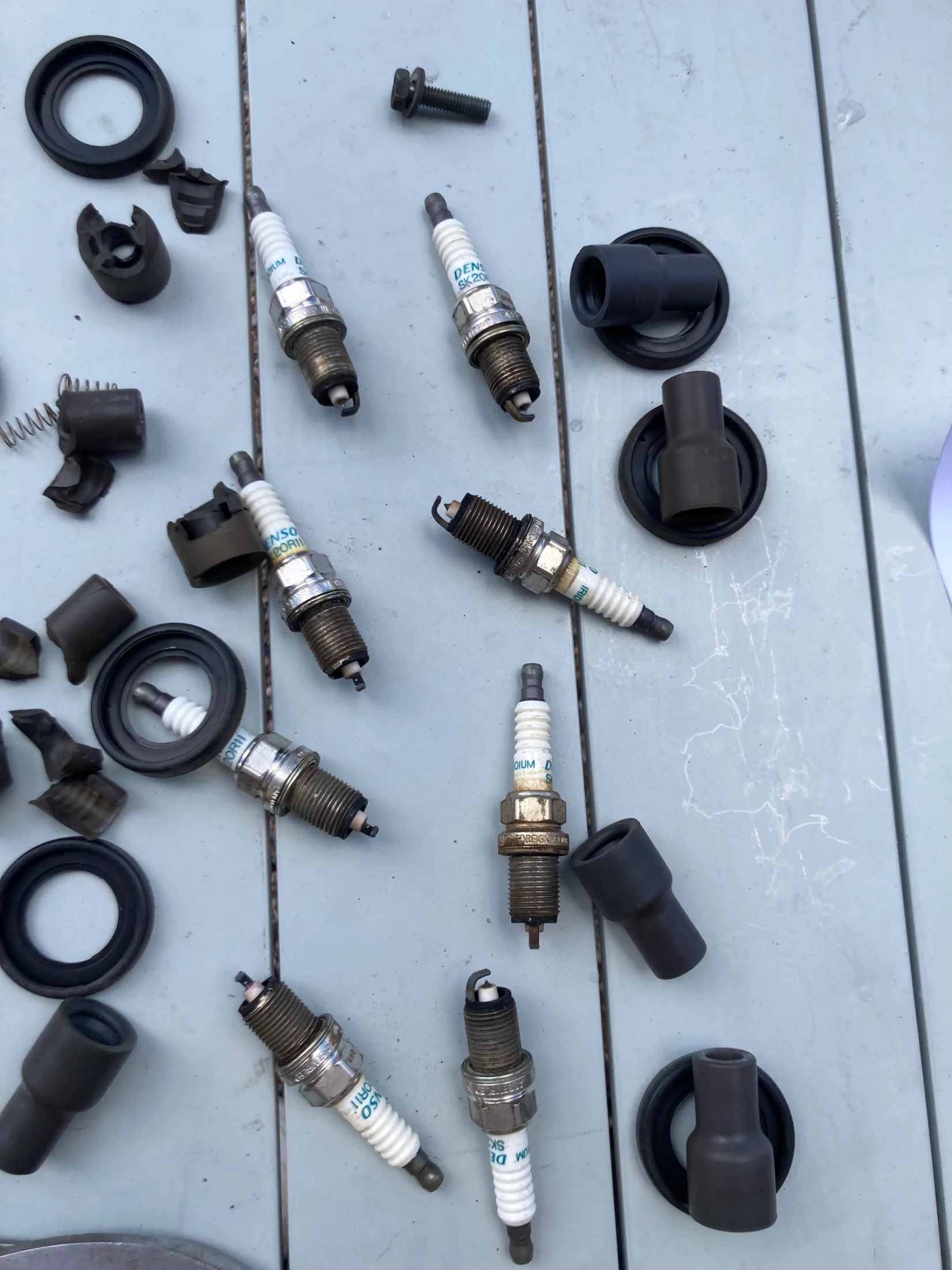 Did plugs and coil boots today. Glad to have done it, a few plugs didn’t look great and the passenger side coil boots were really dry. Coils looked good for the most part, a couple look like they want to split at the seam but this should avoid that issue for a while I hope. Found that the ground by the heater Ts has been unplugged since I owned the vehicle with no apparent adverse impacts, but glad to have that back together too.