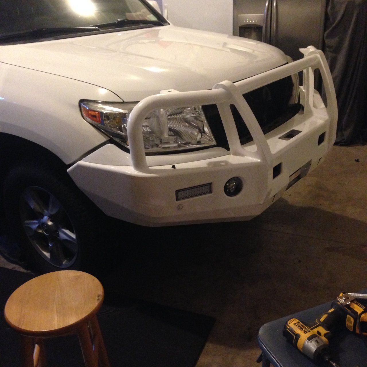 Bumper finally mounted and aligned. Clearance is only 15mm right now, but I'm going to watch it close and decide if I need to loosen it up after driving for a while. Going to have to remove it at a future date to install the winch anyways.