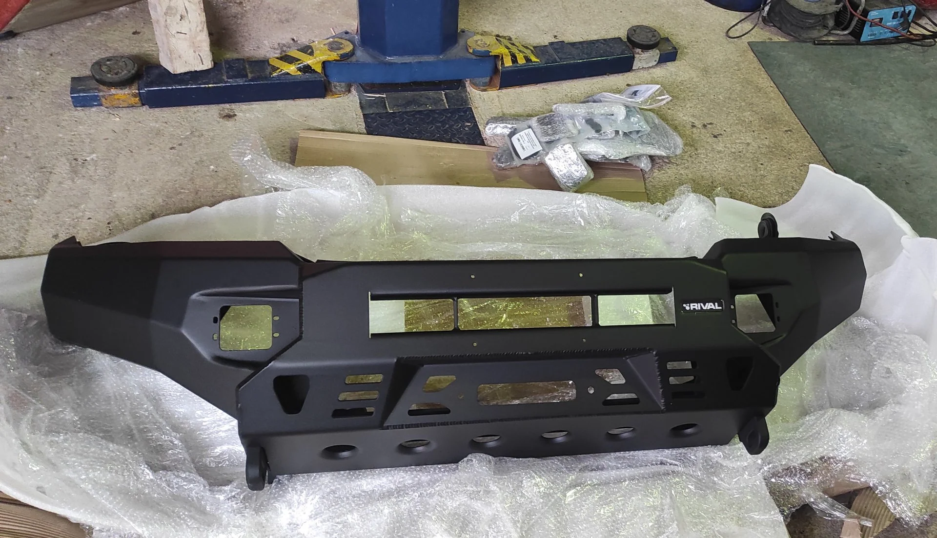 Nice! Can you put it on a scale?Today I recived my Rival front bumper. I am going to color code it. It will be white. It looks super nice and sturdy. Manual and bolts are included with great guidance. Everything seems good quality. I bought Warn VR Evo 12 S and Factor 55 Ultrahook for it. I have been waintg for BP 51. Late January...