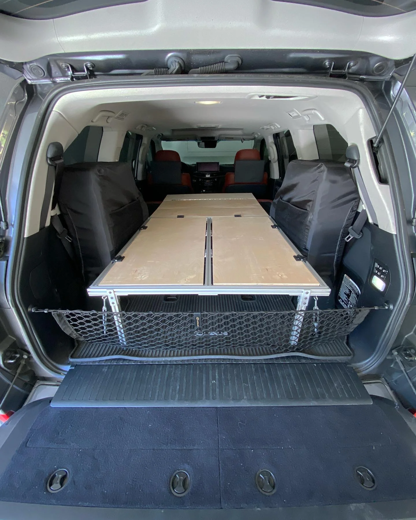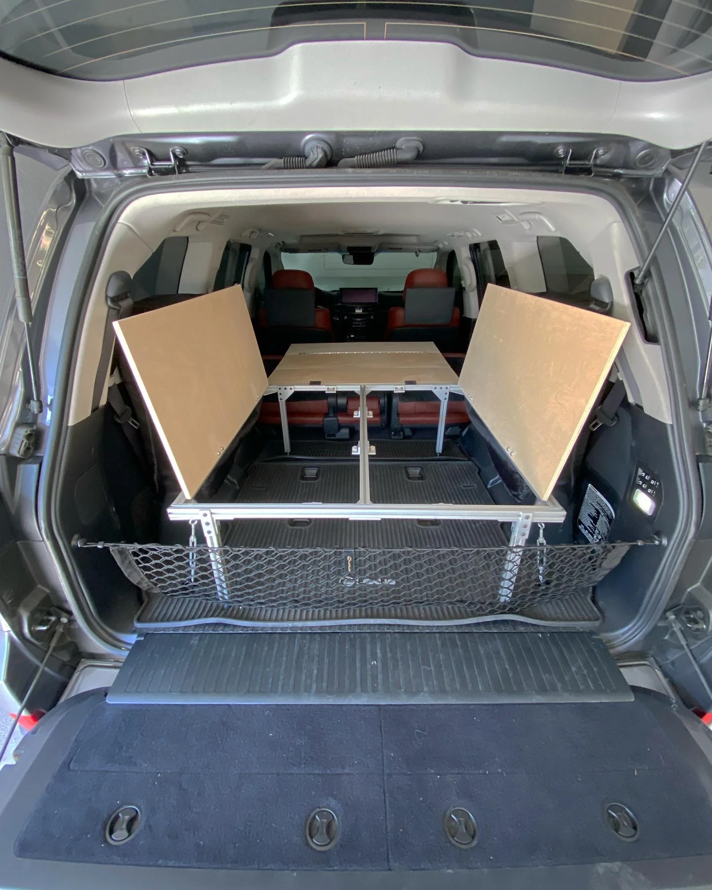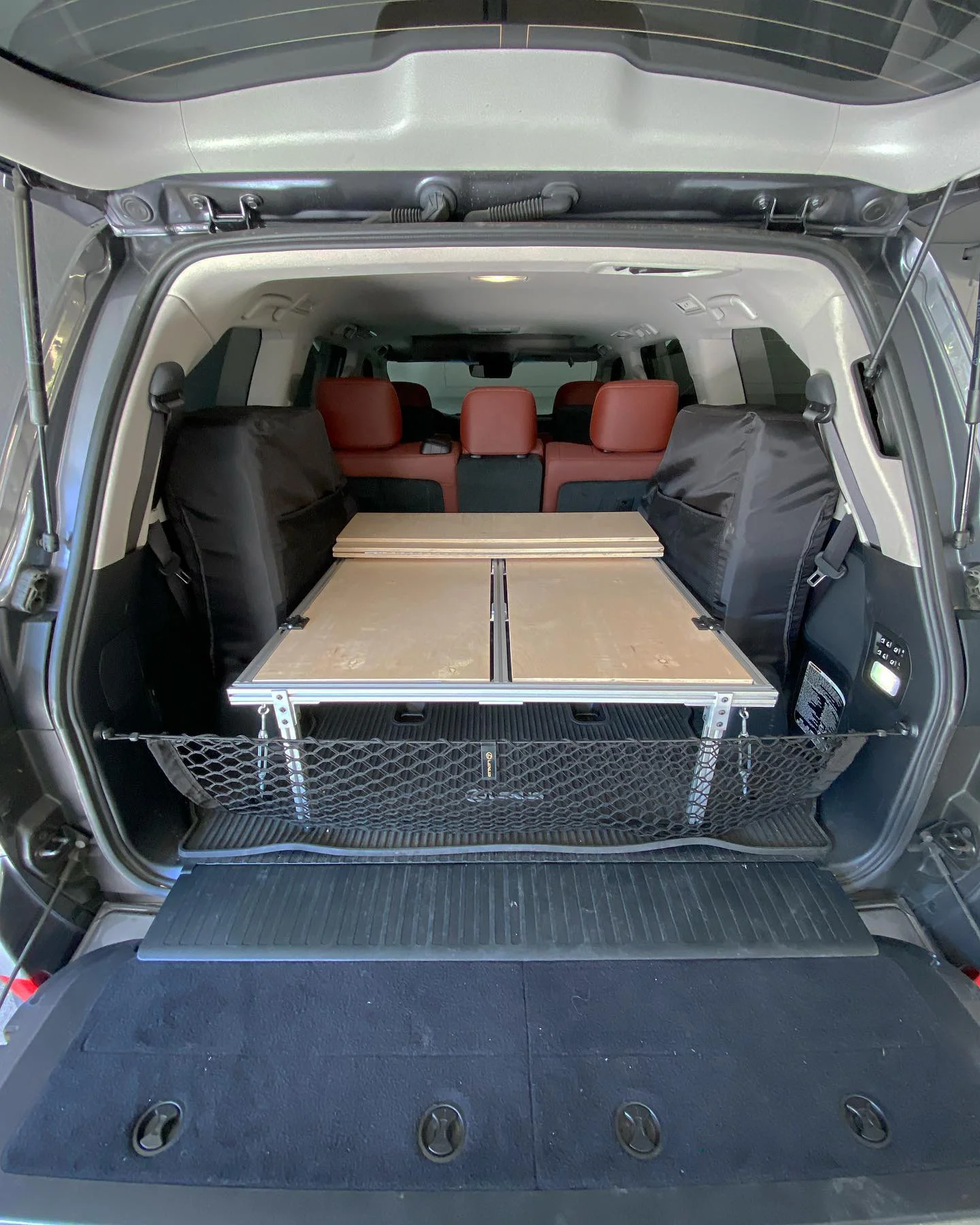 Added a custom GX Basecamp sleep platform made of aluminum extrusion bars and Baltic Birch plywood. Paired with the Exped Megamat Duo mattress, it’s perfect for those 1-night camping and dirt bike riding trips.
