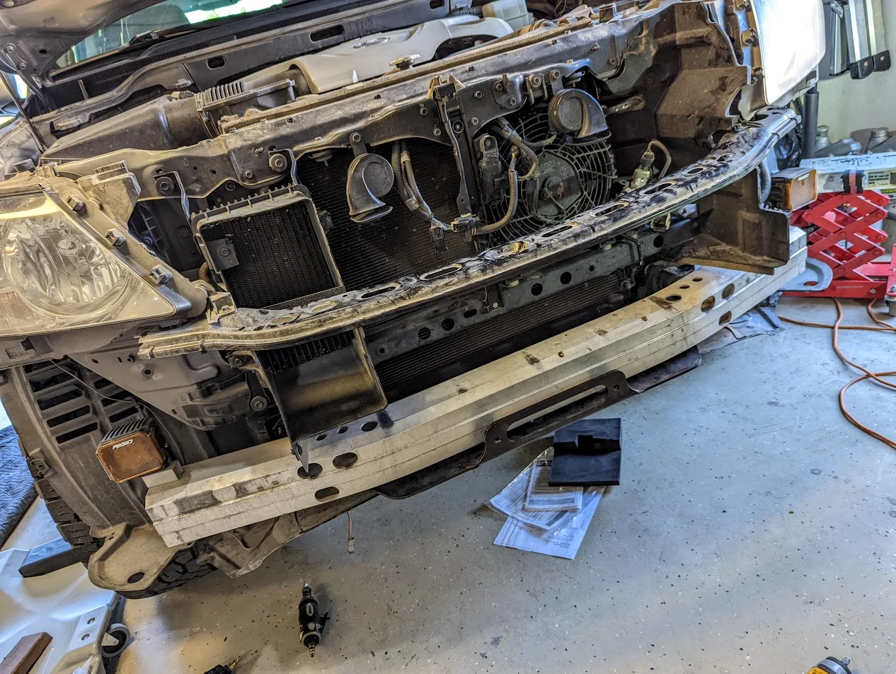 Sorting out how each piece is going to fit up and I'm comfortable I can make it happen at this point. It's going to be a complete custom job and may not be easily replicated unless with a fabrication shop. Idea is to integrate the frame horns in with the HWM plate. Then tie in the cut crash bar in with the HWM plate with enough structure that it can transfer loads in a small overlap crash.