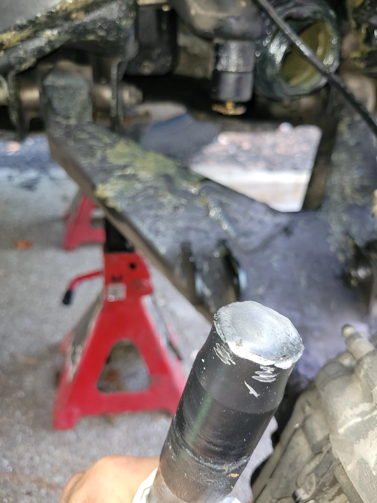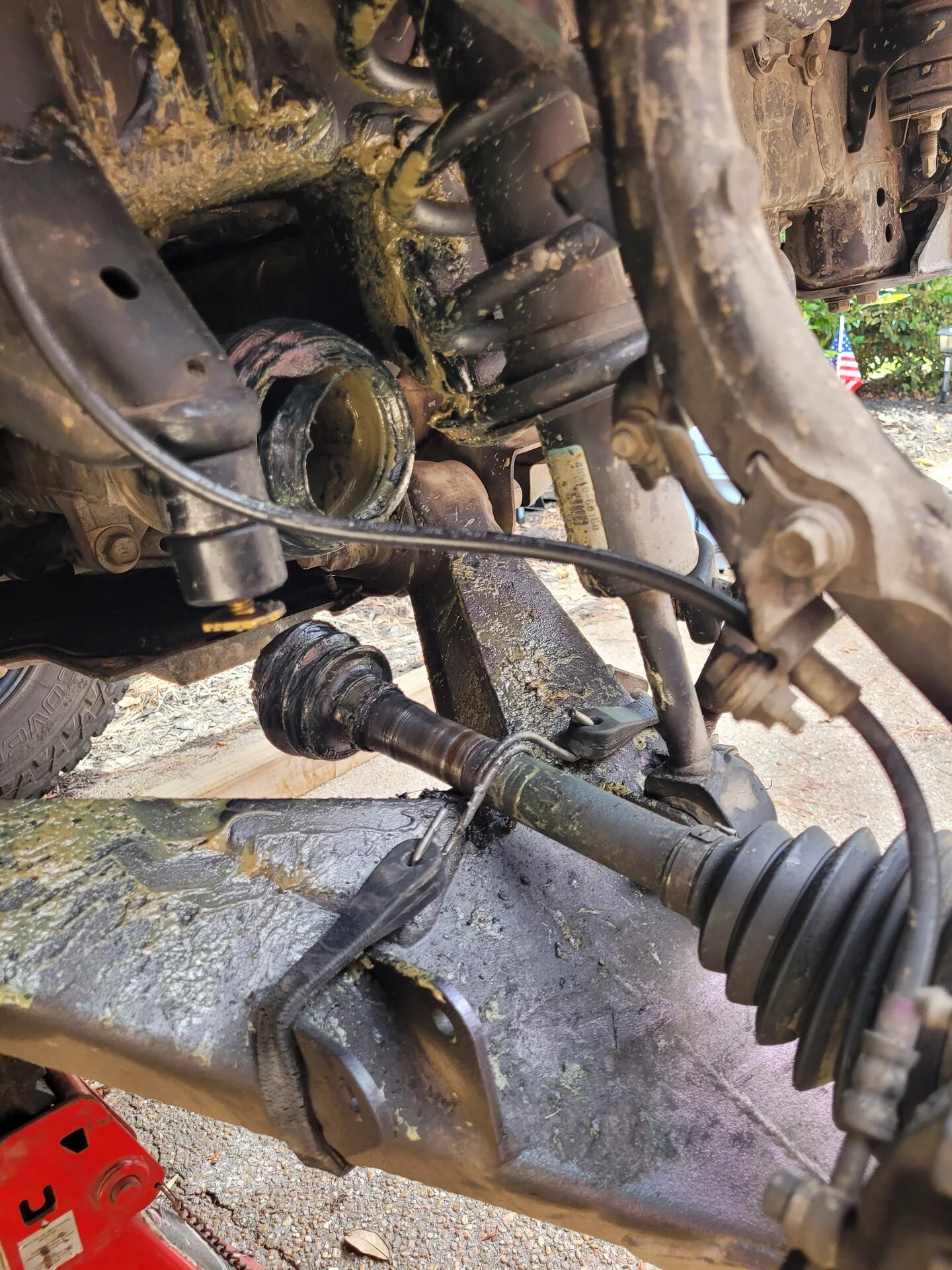 Victim of my own design. Running a +4 long travel kit and getting crazy amounts of droop. I think it was 28 degrees at full droop. Half way up a steep mt climb up rocky tight trail... snapped with 600ft of climb to go. 6 winch pulls in a row before it leveled out. Glad I bought a high dollar winch cause no way a badlands would have got me out of there before dark. Rcv's are in now and can handle 32 degrees of droop... I have the limit straps to weld in... I'll limit it at 28 degrees to be safe. And of coarse carry a spare.