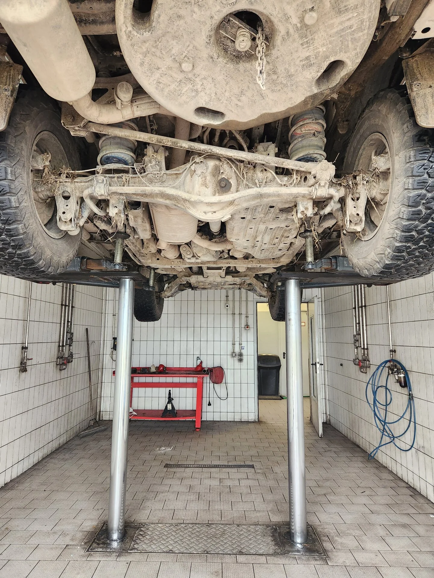 Got LeToya on the lift for a much needed cleaning. The autoskills center on post charges $25 a half hour for the lift and high-temp pressure washer. It took my 2.5 hours to get every nook and pocket cleaned but they only charged me for an hour which was much appreciated. Money well spent IMHO. I plan on doing this after every major trip or at least every 3 months going forward. She really needed the wash.