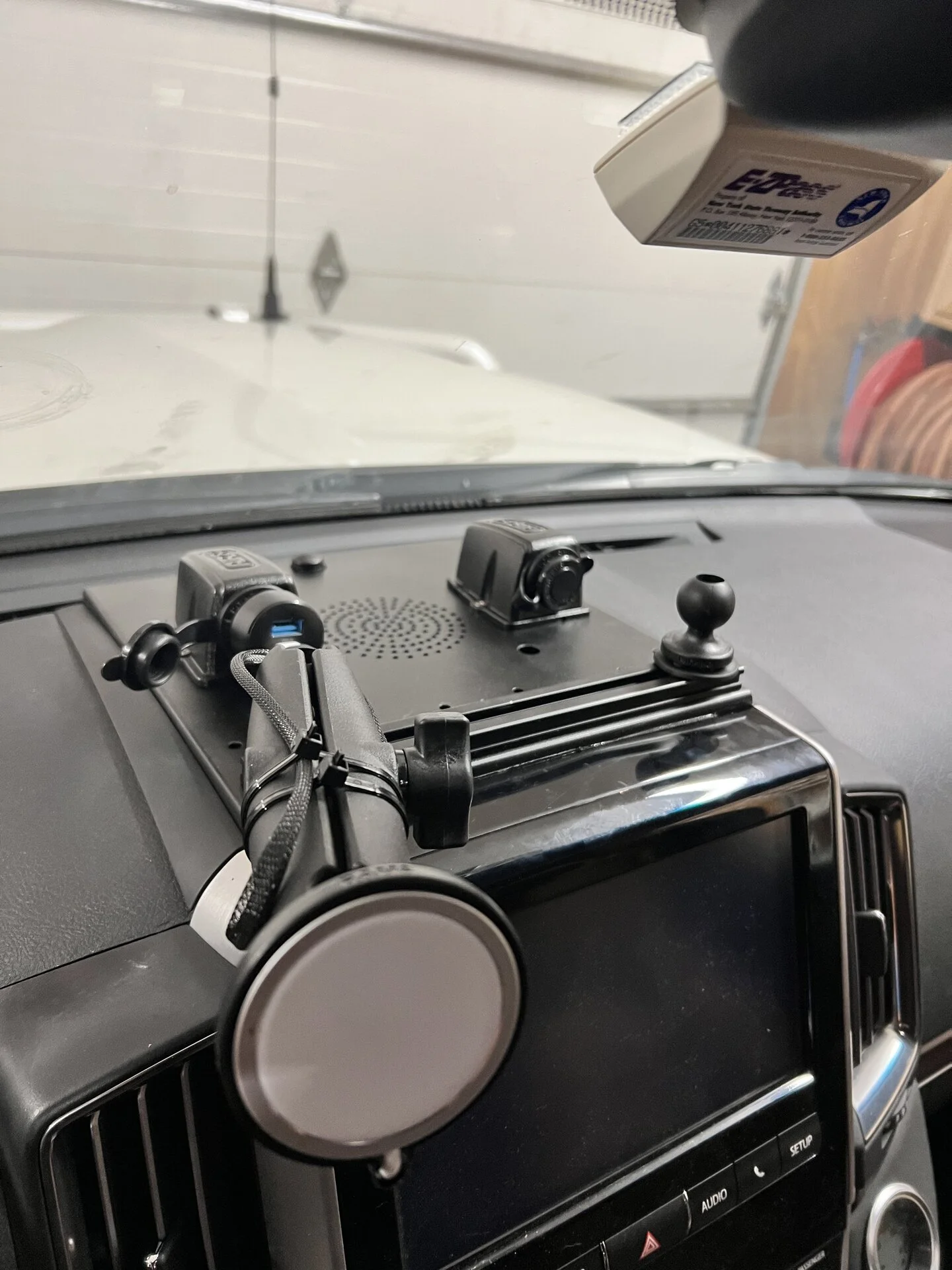 Giamviti Dash Mount added this week. I ran (2) 15A cigar plugs (Blue Sea) in ARB Fridge plug holders. Also added Ram Track mount for phones and maybe future Garmin Overlander or something in that lineup/iPad Mini. Ran #10 power/ground to a Blue Sea Fuse block. Wired hot to Aux Group 31.