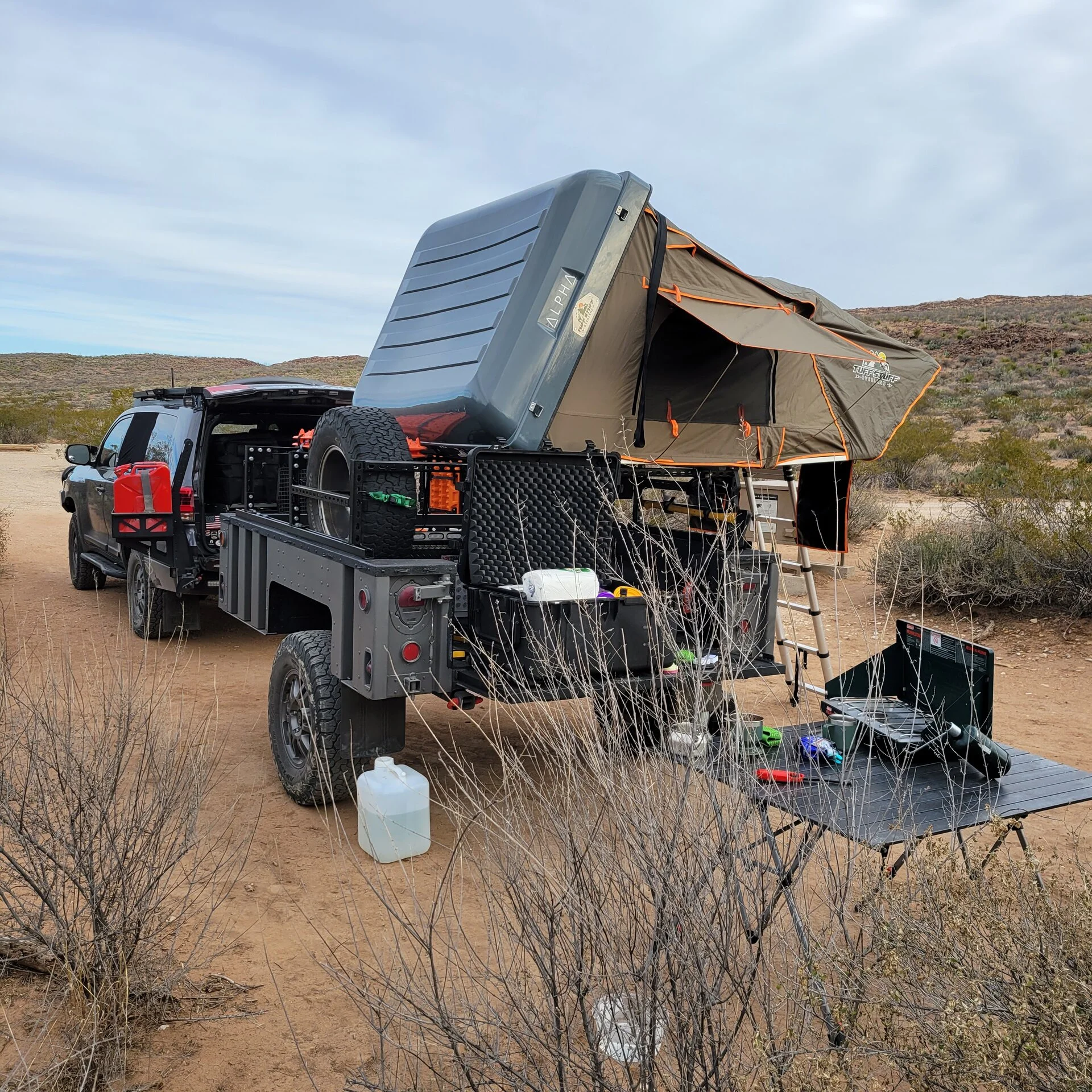 Sure. No problem. And yes that hitch is stupid long. I've tried a few different sizes but this one is only one that works to allow access while hooked. If I run a trail to a backwoods or displaced location; I remove it to avoid dragging during obstacles.Can you show how you went about mounting the lock-n-roll hitch to the neck of the 1101? Crazy how long of an extension you need in order to clear the bumper/swing-outs. Also, a side shot of the trailer behind the Cruiser would be appreciated as well.