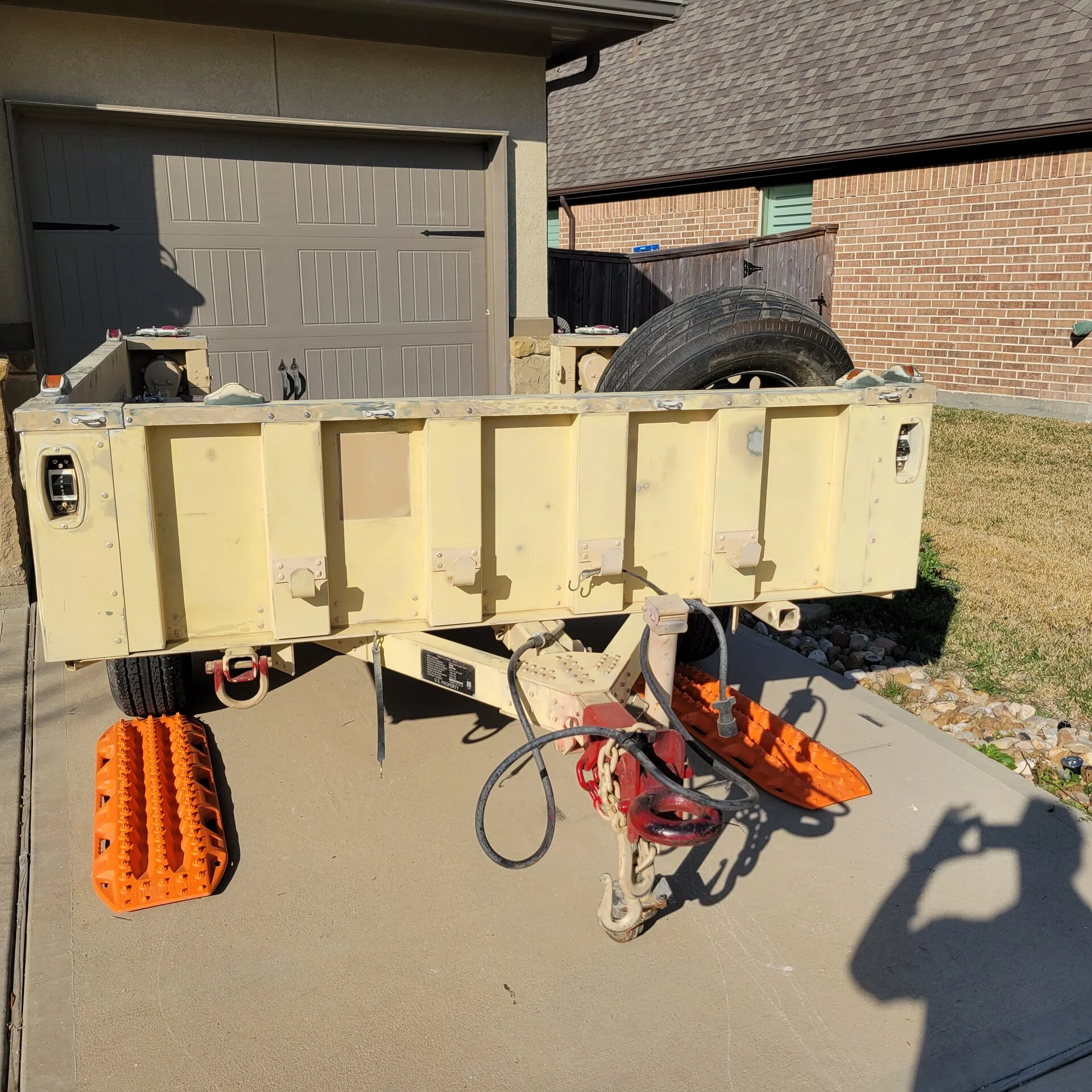 For the hitch, the original "ring" was removed and replaced with the rock and roll. That red colored 4 hole "slip" was welded to the trailer so I could make adjustments and or switch between "hitches".