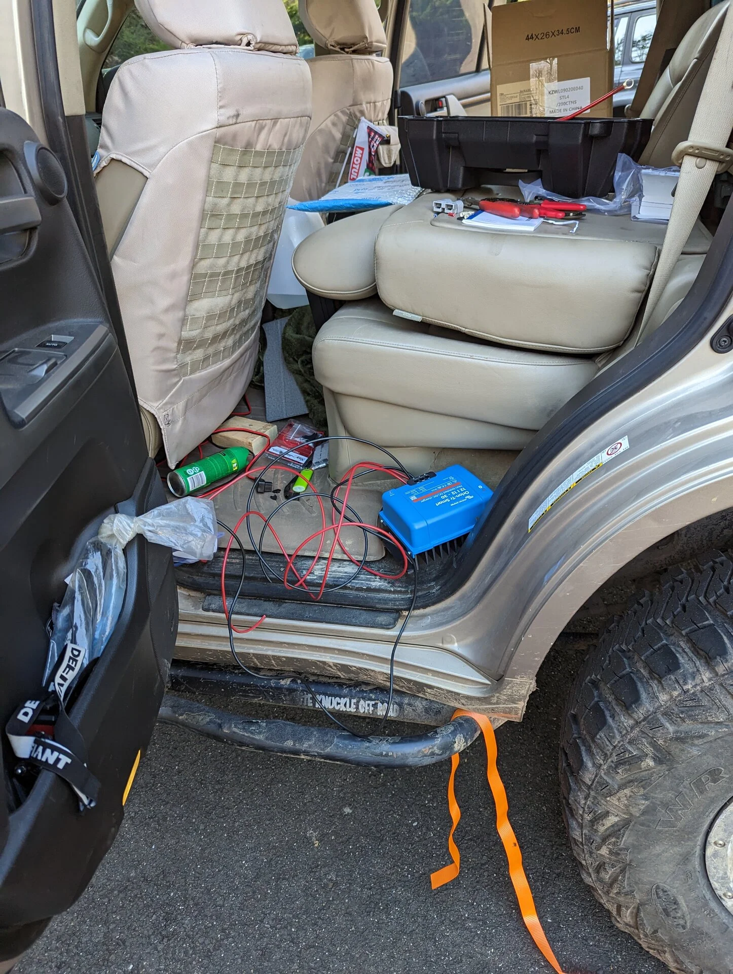 Worked on some wiring. Blue sea fuse panel to clean up the battery connectors and a 2nd battery setup using a DC to DC converter. Still need to figure out where I want to place it all.